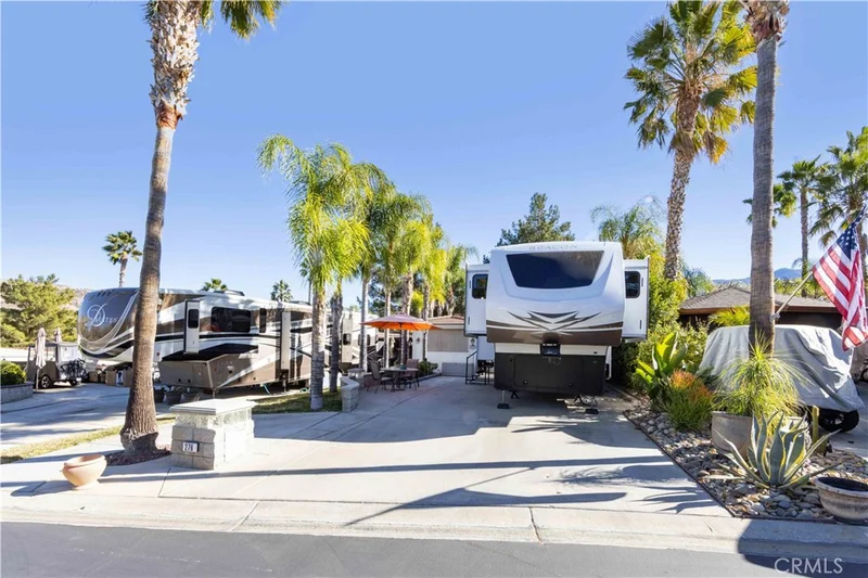 Beautiful Fully Enclosed +-630 Sq Ft Buildout with Quality Super Construction - Spun Fiberglass and Green Wall Drywall for extra protection from ware and tear. Back Yard is all common area and ready for a quick game of bag toss or frisbee in a Huge Grassy Knoll with a perfect sitting area to watch the games. Lots of Trees for Shade and Privacy Hedges for great curb appeal. Inside this beauty is 3 living areas, Large Family Room, Dining Room and Kitchen with full fridge, Stove/Oven, Storage and counter top microwave and toaster oven. Floors are easy to clean tile and the roof is Clay Tile meant to last. Included in Rancho California RV Resort is a 14 hole Executive Golf Course that is free for owners, 5 Pools and Jacuzzi areas, Tennis Courts, Pickle Ball Courts, Laundry Rooms, Dog Park, Horse Shoe Lawn, Club House, Hiking Trails, and Restaurant all inside Gated Community that is Guarded 24/7. You can live here or rent your space. Peace and quiet serenity all just 25 minutes from Temecula Wine Country. No age restrictions. Come on over and check this hidden gem of a place out...