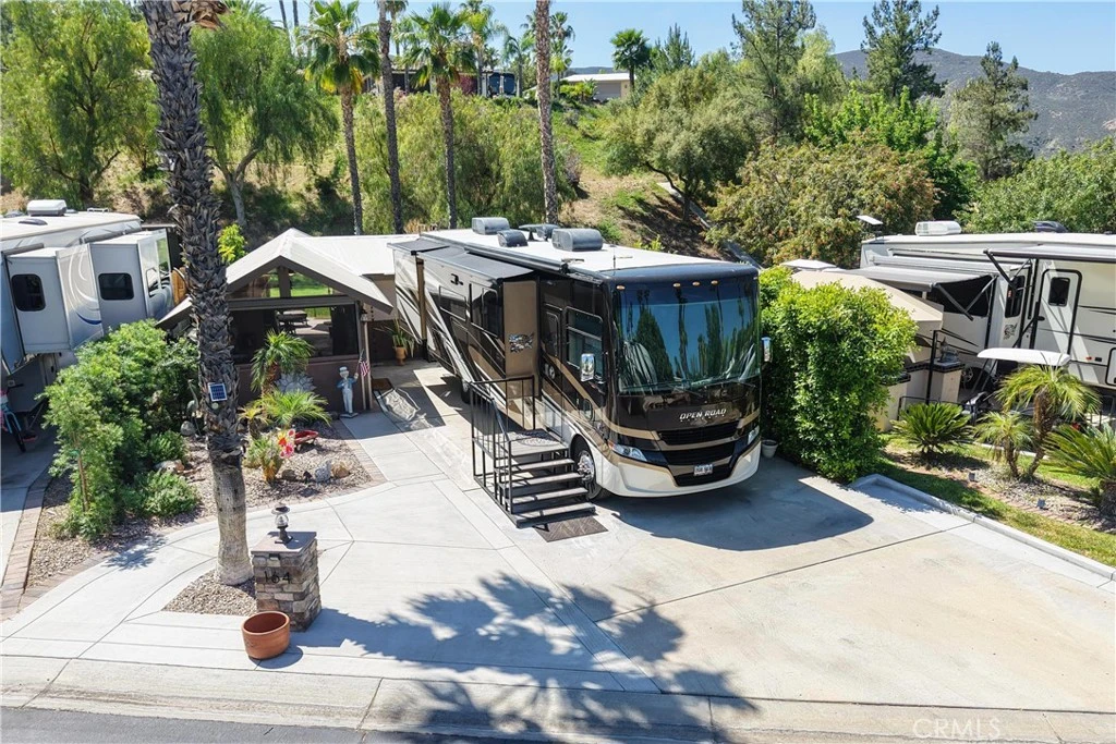 The perfect private hideaway in one of the resort’s most desirable locations! This charming property offers fantastic, low-maintenance curb appeal with beautifully finished stamped concrete and a fully enclosed design featuring double privacy screens, stucco walls, and a gabled Alumawood build-out. Inside, you’ll find a well-appointed space with gorgeous residential cabinetry, a full-size refrigerator, and an electric oven and cooktop—creating a comfortable and functional setup for everyday living or weekend escapes. Privacy hedges on both sides enhance the peaceful setting, while the stunning rear grass area creates a rare, serene environment that feels like your own wooded cabin retreat—quiet, relaxing, and surrounded by nature. Located within Rancho California RV Resort, a gated and 24/7 guard-controlled community offering resort-style amenities including a 14-hole executive golf course (free for owners with unlimited use), 5 pools and multiple jacuzzi areas, tennis courts, pickleball courts, dog park, horseshoe lawn, laundry facilities, hiking trails, clubhouse, on-site restaurant, and market. HOA includes water, sewer, trash, and common area maintenance. Whether you're looking for a peaceful getaway, full-time living, or rental potential, this unique and inviting property delivers comfort, privacy, and resort-style living all in one. Financing available.