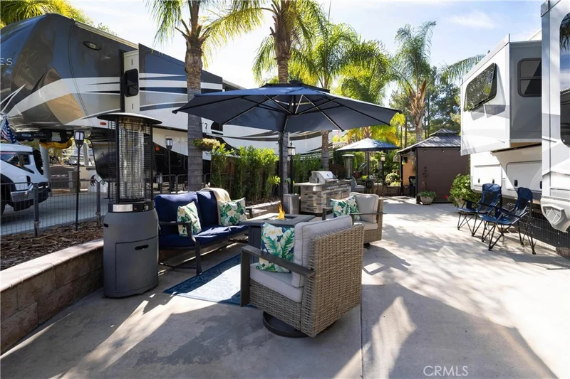 Such a cute lot right across from fishing pond and market. Gazebo makes for a perfect little hide-away to watch TV or read a book. This lot has multiple entertaining spots, Fire-table sitting area, BBQ cooking area zen-like garden area and a perfect 10x10 gazebo to chill in. Behind this lot is wide open grassy knoll with lots of trees to walk your dog or play a little bag toss. Rancho California RV Resort provides amenities such as a 14 hole Executive PAR 3 Golf Course (no fees for owners), 5 Pools/Jacuzzis, Tennis courts, Pickleball courts, Dog park, Club house, hiking trails, Horseshoe lawn, onsite grocery market and restaurant. The resort is guard gated with no age restrictions. Monthly HOA fee includes "unlimited" use of the golf course, amenities, trash pickup at lot, water/sewer and common area maintenance. Financing is available!