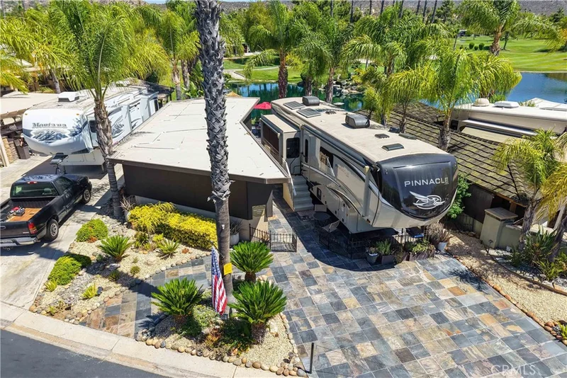 A Truly One-of-a-Kind Opportunity!! Welcome to an extraordinary RV lot at the prestigious Rancho California RV Resort, where luxury living meets nature’s beauty. The moment you step onto your impeccably crafted slate driveway, you’ll be captivated by the elegance and serenity of this lot, designed to be the ultimate retreat. Take in the panoramic views of a scenic waterfall and lush golf course, paired with stunning sunrises that promise to brighten your mornings. After a day of adventure, unwind in your private sanctuary under the shade of a Palapa—a perfect setting to enjoy the outdoors. And just steps away, a charming fireplace awaits, creating a cozy ambiance for cool evenings under the stars. Your lot features a fully screened-in Allumawood brick combination build-out, designed to offer both style and comfort. Inside, you’ll find a welcoming dining space, a spacious island kitchen with ample cabinet storage, and a washer and dryer for your convenience. The living room is thoughtfully arranged for relaxation, new furniture available per inventory, large windows that invite the natural beauty of the outdoors inside. An electric roll-up sunshade allows you to control the sunlight, making this space enjoyable year-round. The added convenience of a septic-free ½ bath water closet ensures comfort while maintaining the integrity of the lot’s design and functionality.This is one of the most beautifully developed lots in all of Rancho California RV Resort, offering an unparalleled living experience. With luxurious amenities, stunning views, and a relaxing outdoor space, this lot is truly a once-in-a-lifetime opportunity to embrace the RV lifestyle at its finest. 2022 38' Pinnacle bath and half also 4sale. Financing Available....