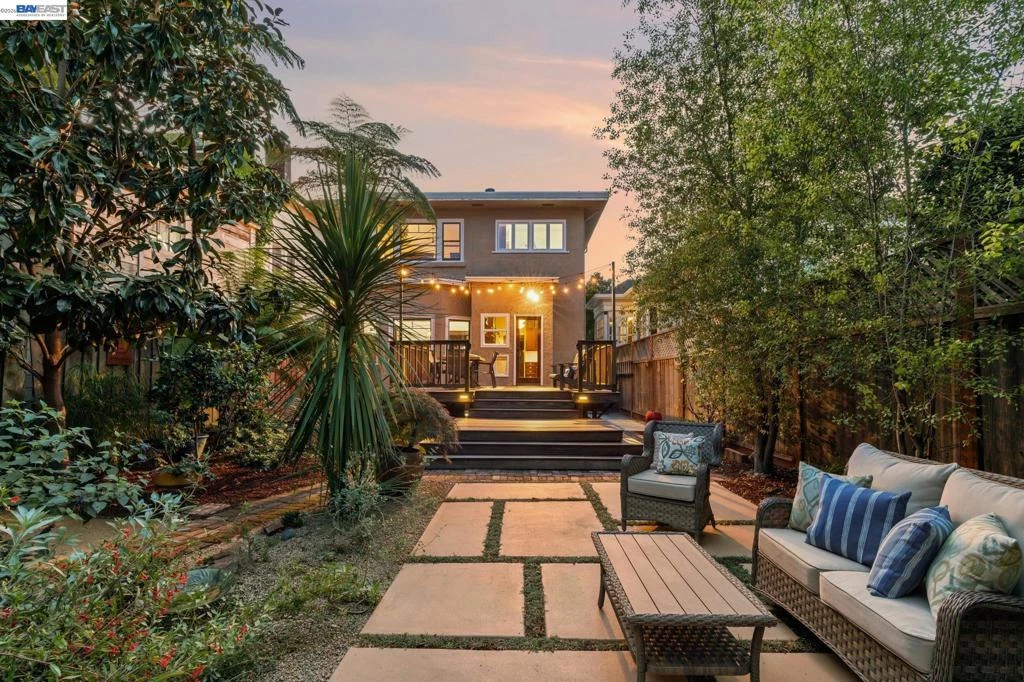Well loved for over 25 years, this iconic Alameda home with an oasis-like backyard is in search of its new owner. The perfect blend of traditional style and modern touches,the home shines with beautiful architecture of an era gone by, deep wood wainscotting, built-in cabinetry boasting leaded glass, pocket door with glass inserts, and more. The floor plan flows easily from the foyer to formal living and dining rooms, into a tastefully renovated kitchen, out to a backyard that will be coveted by all who visit. When you step out onto your two-tiered Brazilian Ironwood deck, you will feel as if you’ve been transported to a tropical resort surrounded by mature gardens, perfect for entertaining or enjoying a quiet evening at home. The personal living spaces are upstairs where you'll find the primary suite with updated bath, 2 additional bedrooms, hallway bath, and classic built-in linen cabinetry. As if that weren’t enough, you’ll find an extra 870 square feet in the finished basement including, bonus room, laundry room and workshop.Storage is often an issue on older homes, not this one! From the expansive kitchen cabinetry, floor-to-ceiling linen closet, closet space, workshop shelving, attic space, to the exterior 70 sq ft shed, your belongings will find the perfect space. The flag lot provides a lengthy driveway for off-street parking and easy access for heading off on a ride around the island on your favorite mode of transport, easily stored in the exterior shed. Located on one of Alameda’s quiet streets, you’re close to award-winning schools, parks, beaches, shopping, including the classic Encinal Hardware and Pharmacy store at the end of the block, Park Street and South Shore with their many shops and restaurants, public transit, the Oakland airport, and so much more. This is the one you’ve been waiting for!