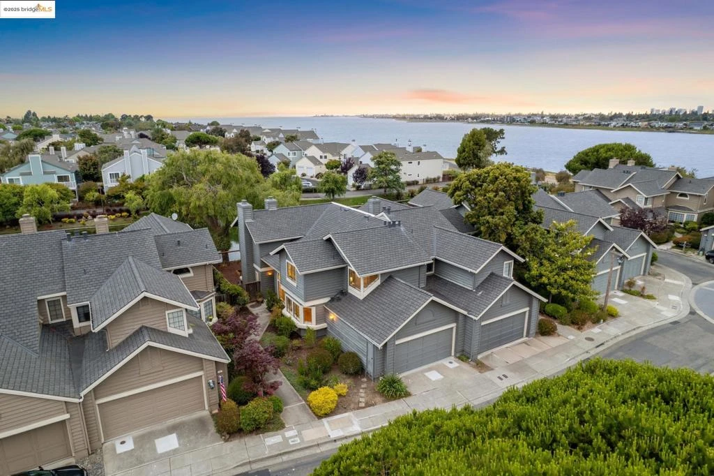 Tucked into one of Alameda’s most serene enclaves, this Bay Farm Island home blends elevated elegance with West Coast ease. The remodeled 3BD/2BA townhouse sits on a private stretch of the lagoon (with dock easement), where a graceful willow tree casts reflections across the water and waterfowl swim by. Inside, the vibe is refined, coastal, and quietly luxurious. Box beam ceilings and wide-plank hardwood floors anchor the large living room, while a built-in wet bar and large lagoon-side sliding doors invite in the water view and allow for easy indoor-outdoor living. The kitchen is equal parts functional and stylish, with new stainless steel appliances (including a wine fridge) and a built-in linen-upholstered settee inviting guests to lounge and entertain the cook. Upstairs, the primary suite is a calm retreat with terrazzo tile flooring, a basketweave stone fireplace, and nuetral spa-inspired tones. Even the staircase features luxury woven carpet, adding warmth and texture. There is plenty of storage in ample closets and a large two-car garage. With access to community amenities including a pool and hot tub, this lagoon-side home offers a rare blend of modern comfort, thoughtful design, and natural beauty.