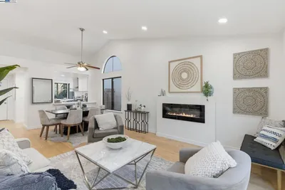 Move right in! Recent upgrades include a newer roof, dual-pane windows, HVAC with air conditioning, EV charger, updated flooring, and a fully renovated kitchen and bathrooms. Located in Alameda’s West End, this charming 1905 Craftsman bungalow offers 2 bedrooms, 2 bathrooms, and 979 sq ft of updated living space on a 4,305 sq ft lot. Luxury plank flooring runs throughout. The living room features bay windows and a modern ceiling fan, while the dining room showcases high wainscoting with picture rail and a contemporary brass starburst chandelier. The kitchen showcases white shaker-style upper cabinets, gray lower cabinets, quartz countertops, stainless steel appliances, recessed lighting, and an island with a fluted wood accent panel. The primary bedroom includes an ensuite bath with herringbone tile floors and a tiled stall shower with glass enclosure. The second bathroom features a tiled shower over tub. The landscaped backyard includes a detached structure with French doors and recessed lighting—ideal for an office, studio, or gym. Located near Jean Sweeney Open Space Park, Webster Street shops and dining, and easy Webster/Posey Tube access. Open house Tue 3/24 11-1pm, Sat & Sun 2-4pm.