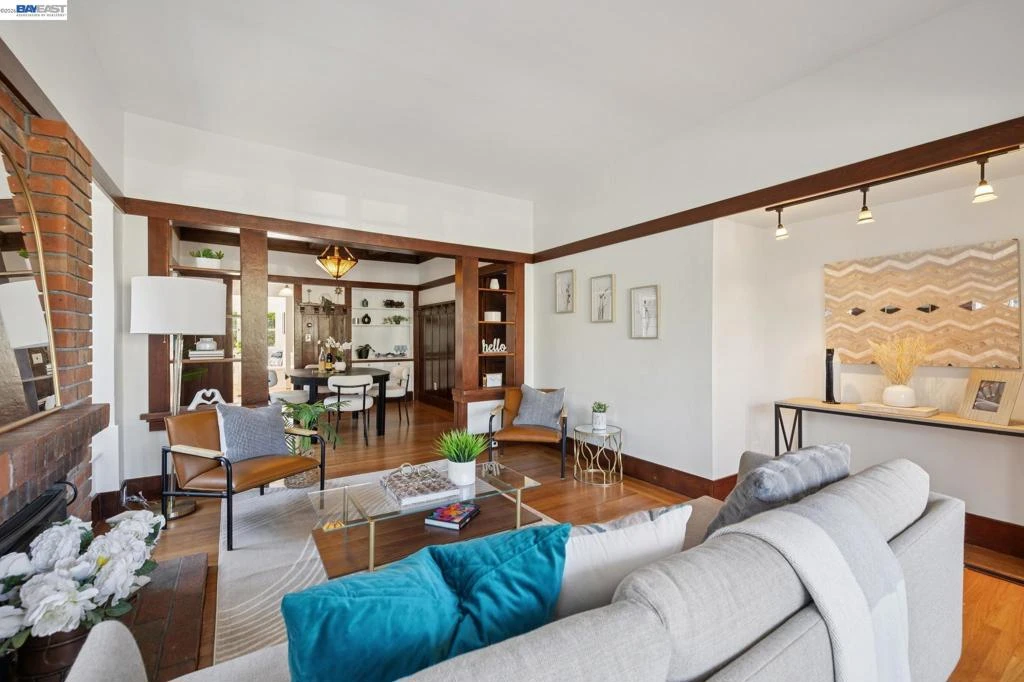 Charming East End bungalow filled with light, warmth and character! Built in 1907, this 3 bedroom, 2 bath home offers 1,624 sq. ft. of inviting living space with refinished wood floors and fresh interior and exterior paint. The living room features a wood-burning stove with a newly working chimney, while the dining room showcases wainscoting, built-in shelves, a box-beam ceiling and a Tiffany chandelier. The kitchen includes an eat-in breakfast nook with booth seating and the laundry room conveniently opens to the huge backyard. Two bedrooms and a shared tiled bathroom with a shower-over-tub are located downstairs, while upstairs offers a spacious bedroom, ample storage, and a bathroom with a skylight. Set on a 4,370 sq. ft. lot, the expansive backyard features a prolific lemon tree, a shady redwood and ample space to relax or garden. Additional highlights include a smart thermostat and newer light fixtures and ceiling fans throughout. A curb cut for off-street parking is currently under review with the City. Ideally located near top East End schools, Encinal Market, and Lincoln Park’s pickleball, bocce, and swimming facilities—this timeless home truly has it all!