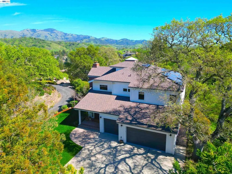 This spectacular gated estate has an unparalleled setting in a designer landscape, which includes a nature path and seating areas, large grass areas and an infinity edge pool and spa. Treated as a forever home by current owners, the exterior and spacious interior have been extensively remodeled. Chef’s kitchen features a CornuFe range. All remodeled bathrooms feature heated floors. Remodeled primary bath includes a jetted tub and steam shower. Most recent updates include roof, deck, gazebo, hardwood floors inside and out. Separate solar systems generate home electricity and heat the pool. Potential for an ADU. Open 1-4 pm 3/14 & 3/15. Conveniently located a few blocks from Roundhill Country Club.