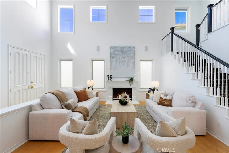 Nestled behind the gates of OakView in the prestigious Westridge community of Aliso Viejo, this exceptional 3,541-square-foot home offers five spacious bedrooms plus a dedicated office, blending timeless design with thoughtful upgrades throughout. Soaring vaulted ceilings elevate the living room, where one fireplace creates a warm focal point, while a second fireplace anchors the inviting family room with custom built-ins. Two bedrooms open to a charming front balcony, adding outdoor space and coastal-inspired views. The beautifully appointed kitchen features stainless steel appliances and flows seamlessly into the main living areas, ideal for both everyday comfort and entertaining. Extensive upgrades include Pella Lifestyle Series wood casement windows with triple-pane glass, integrated fabric shades, pine wood interior trim detailing, and interior-mounted screens, along with a QuietCool Whole House Fan system and a tankless water heater for modern efficiency. The garage is outfitted with custom cabinetry, a workbench, storage racks, and upgraded lighting. Step outside to an entertainer’s backyard complete with a custom patio cover featuring translucent panels and café lighting, as well as a stylish fire pit with black rock accents—creating the perfect setting for gatherings and relaxed evenings in one of Aliso Viejo’s most sought-after gated communities.