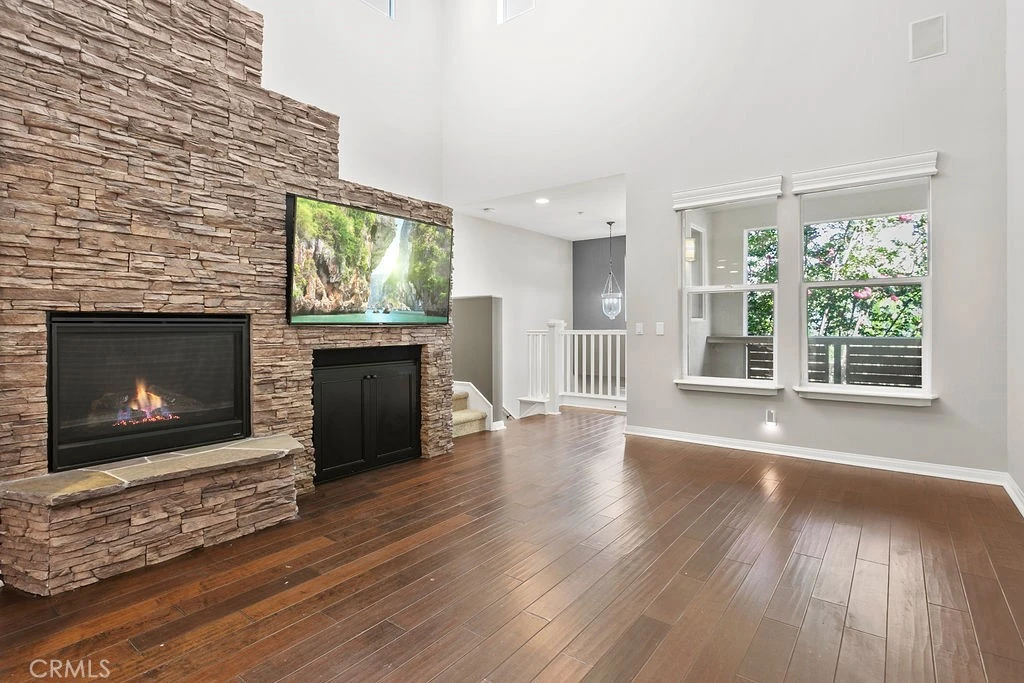 Available May 5th, this unique Aliso Viejo townhome stands out for its open floor plan and impressive 25-foot ceilings that frame views of the mountains and city lights. The layout is built for hosting, with a seamless flow between the family room, dining area, and a kitchen featuring quartz countertops and stainless-steel appliances. High-end custom touches are found throughout, including hardwood flooring, crown molding, bespoke lighting, and specialized additions like a built-in wine bar and a balcony bar. Both bedrooms are well-sized, featuring walk-in closet organizers for maximum storage. Practicalities include a two-car tandem garage with extra storage space and access to The Club’s resort-style gym, pool, cabanas, and outdoor fireplaces. The location is highly walkable, sitting just a short distance from the shopping, dining, and theaters at Aliso Viejo Town Center. 2-Car Tandem Garage-parking only; no overnight guest-spot access for residents.