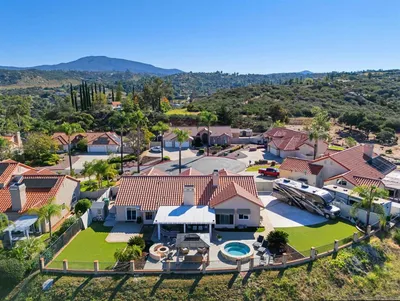 Experience the epitome of California living at 2043 Camino De Reimitz, Alpine. This sprawling custom-built home boasts a lavish 4,811 square feet of living space nestled atop a generous 6-acre lot. Plenty of land to add a second home (possibly a third home). With six bedrooms and five bathrooms, this residence offers an abundance of space for comfort and relaxation. Upon entering the gated street, you are welcomed by a private driveway paved entirely in cement leading into this grand estate. The house itself is a testament to architectural excellence with high ceilings that reach up to 11 & 18 feet, creating an airy and spacious atmosphere throughout. The interior design is impressive in its own right; featuring granite countertops, custom cabinetry, updated wiring throughout and dual-zone HVAC. The wide hallways measuring between 5-6 foot in width ensure easy movement within the house. Four bedrooms come complete with en-suite bathrooms for added convenience along with two additional guest bathrooms located near the kitchen and main hallway respectively. Outside, the property continues to impress with its expansive covered patio adorned with stamped cement overlooking the custom pool and spa area - perfect for hosting or simply unwinding after a long day. A sizable detached garage that spans over 1,500 square feet can accommodate up to four cars comfortably while also offering ample storage space. This home is not just about luxury but also about sustainability as it comes equipped with 24 paid solar panels that cover all electricity needs making it energy efficient. Beyond the confines of this stunning property lies the thriving community of Alpine which is fast becoming one of San Diego's most sought-after neighborhoods. Here you will find top-rated schools, beautiful parks, shopping centers and dining options just minutes away from your doorstep. Alpine offers residents a unique blend of rural tranquility coupled with modern amenities making it an ideal place to call home. Enjoy outdoor activities? Alpine has numerous hiking trails and natural parks where you can enjoy California's natural beauty. In essence, 2043 Camino De Reimitz, Alpine is not just a house but an experience. A place where luxury meets comfort and convenience; where every day feels like a vacation. Come and see for yourself what this exceptional property has to offer! Some photos are virtually staged...un-staged photos are included in media catalog.