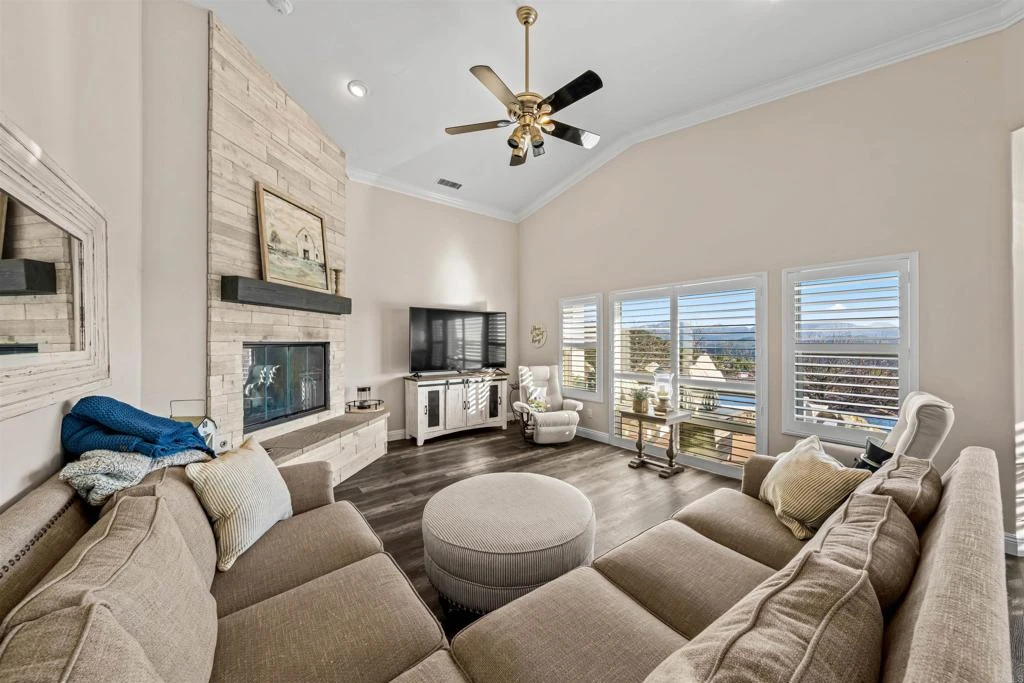 Welcome to this exceptional 4-bedroom, 3-bathroom modern farmhouse estate in Palo Verde Ranch, where over $500,000 in recent renovations meet breathtaking panoramic views and elevated country living. Blending classic charm with modern upgrades, this home offers the perfect balance of style, comfort, and functionality. Designed with a highly sought-after layout, the home features a primary suite on the first floor with its own fireplace, along with an additional full bedroom and bathroom downstairs—ideal for guests or multi-generational living. Upstairs, you’ll find a spacious office loft, two additional bedrooms, and a full bathroom, offering flexibility for today’s lifestyle. Inside, the home has been beautifully transformed with vinyl plank flooring, new carpet, fresh interior and exterior paint, and a fully remodeled kitchen featuring quartz countertops, a farmhouse sink, modern fixtures, and a brand-new backsplash. A standout feature is the custom walk-in pantry with its own sink and quartz countertops, combining both convenience and elevated design. All three bathrooms have been completely renovated, and the custom primary closet adds both elegance and functionality. A new fireplace and shutters throughout enhance the home’s warm, inviting aesthetic. Built for efficiency and peace of mind, the property includes 55 paid-off solar panels, a high-producing well (49 gallons per minute) with a 5,000-gallon holding tank, soft water system, and reverse osmosis drinking water. Fire-conscious upgrades such as fire-approved windows, fireproof rain gutters, and brush clearance provide added security. Step outside to your private retreat featuring gorgeous lush landscaping with mature trees, an avocado tree, a lemon tree, a lime tree, and beautiful flowers, along with a newly resurfaced Pebble Sheen pool with solar heating, propane, and wireless controls, an outdoor shower, and enhanced lighting. The property also offers RV parking with full hookups and dumping station, two fully powered sheds, and a garage solar hookup—perfect for both convenience and recreation. Located in the highly desirable Palo Verde Ranch community, this home offers space, privacy, and access to one of Alpine’s most sought-after neighborhoods.