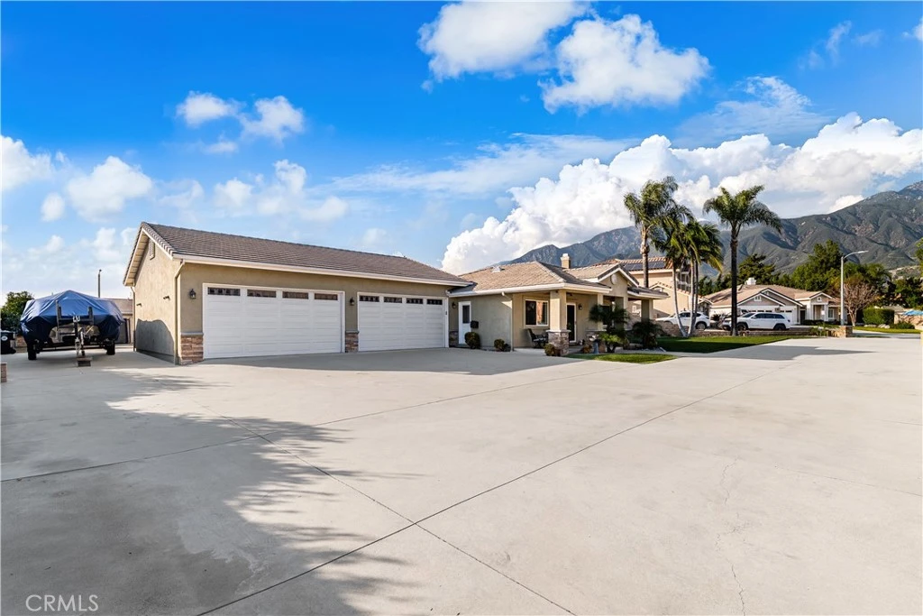 Stunning single story Alta Loma home, nestled in a cozy cul de sac with spectacular mountain view's and so many extras! Move in ready, this single story home now 2000sq.ft. was completely remodeled (taken down to the studs), & added onto w/ permits, specialized materials, & superior craftsmanship, tailored to lifestyle, with much attention to detail. Its features are too numerous to list here, but some include the now, 1200 sq.ft. oversized & finished, 4 car, extra deep garage! Big trucks fit with its 8' tall doors & one bay is a pull thru! This garage also has a 3/4 bathroom inside! Some of its other features include, new garage door openers, ceiling fans, storage area above with pull down stairs, surround sound, plumbed for utility sink, & outdoor tiled shower near pool area! Also enjoy the extra large driveway with plenty of room for you &/or your guests to park, maybe a dozen cars or more! Plus, there is an outdoor boat or RV parking area with full hookups! The inviting covered front porch area with ceiling fans, warmly welcome you to the beautiful front entrance. Inside, relaxing colors welcome you into the spacious open floor plan. Well appointed tasteful features include luxury vinyl plank flooring, window shutters, dual pane Milgard windows, copper plumbing, can & other lighting w/ dimmers. Beautiful gourmet kitchen looks onto the dining room, living & family room areas. White kitchen cabinetry, granite countertops, walk-in pantry w/ glass door, large breakfast bar area, & a multitude of special lighting features throughout to help create the perfect mood for your occasion! Other upgraded comfort features include a beautiful gas fireplace in the living room, ceiling fans galore & the extra outdoor outlets make Christmas lighting decorating easier! The 4th bedroom, currently being used as an office, is conveniently located & has its own private entrance! On the other side of the home you will find bed & bathrooms, indoor laundry room & storage cabinetry just across the hall. The primary en-suite, has spacious walk-in closet, & XL shower! Stay cool in the backyard, under the covered patio. Take a dip in the refreshing pool while under the umbrella in the shallow water on the baja reef shelf, while enjoying mountain views & hearing the water falls. Relax in the spacious bubbly spa or lounge around the gas fire pit with friends. So many extras here! Come book a tour, to see and hear all about them & experience this customized estate for yourself.
