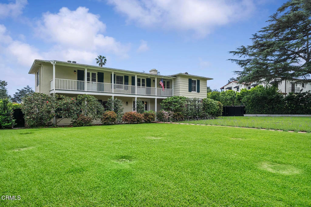 Experience the perfect fusion of classic style and grand scale in this stunning 4-bedroom, 4.5-bath Monterey Colonial estate, situated on a quiet corner of Midlothian Dr. near the prestigious Altadena Town and Country Club. Built in 1930 on a generous .71-acre lot, this 4,245 SF home offers a blend of classic architectural detail and modern luxury. A long brick pathway to the front door flanked by mature camellias and azaleas, offers mountain views and a backdrop of tall, swaying palms. The first floor features a formal entry and hardwood floors throughout. The living room features a fireplace and large bay window. Designed for both sophisticated entertaining and comfortable family life, this home provides dedicated spaces for work and relaxation: a library with classic wood paneling, a family room featuring beamed ceilings, built-in cabinetry and two desk spaces, each with a fireplace, and a massive slider opening to the rear yard. Step into the gourmet kitchen featuring quartz countertops, large pantry, and charming breakfast nook with storage underneath the seating area, high-end appliances, including a Sub-Zero fridge/freezer and wine fridge, Bosch dishwasher, and a built-in microwave - all centered around a fabulous vintage Magic Chef stove with six gas burners and four oven compartments. A Butler's pantry and a separate, large laundry room enhance functionality. The formal dining room boasts wainscotting, large windows, and a crystal chandelier. Upstairs, the spacious, light-filled primary suite features an updated bath and spacious walk-in closet. The landing has French doors leading to a veranda spanning the entire frontage and shared by another bedroom. The expansive, resort-like rear yard is a true oasis. It features a saltwater, heated pool with spa and diving board. The landscaping includes wide-open spaces along with rose bushes, olive and citrus trees. A Viking stainless steel built-in BBQ with concrete countertops and a separate charcoal smoker grill complete the outdoor kitchen. A detached two-car garage accompanies a 356 SF game room/pool house with a full bedroom and 3/4 bath, offering ideal space for guests or recreation. Additional amenities include an extended gated driveway large enough for RV parking, newer roof, dual zone HVAC, and updated electrical panel. This extraordinary estate with enduring elegance is an entertainment haven. This is a rare opportunity to own a unique home on the market for the second time in almost 75 years.