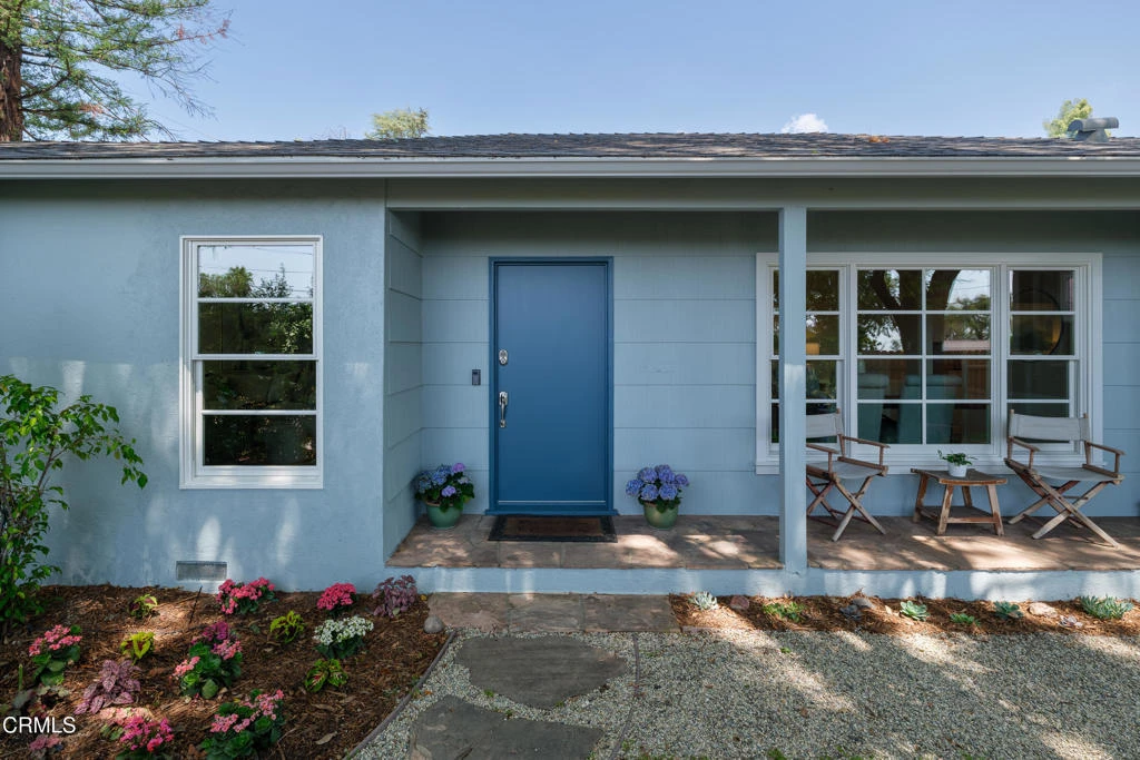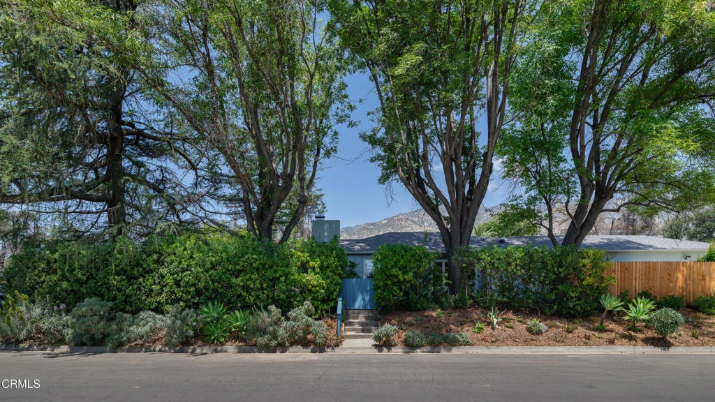Gracefully tucked away on a quiet cul-de-sac, this privately hedged and thoughtfully landscaped elegant residence serves as a peaceful retreat. Surrounded by mature trees, the charming facade showcases timeless elegance and refined craftsmanship, offering a lifestyle of exceptional comfort and versatility.The expansive living room serves as the heart of the home, anchored by a dramatic fireplace and large windows that bathe the space in natural light. French doors open to a serene patio, seamlessly blending indoor and outdoor living. The updated kitchen is a chef's delight, featuring a picture window, butcherblock counters, and a premium Villeroy & Boch apron sink. The home offers two generously sized bedrooms with stunning mountain views, complemented by a refined bathroom. A unique highlight is the central, covered, open-ended breezeway, providing a cool, shaded lounging spot during warm afternoons. Across the breezeway is a dedicated flexible bonus room with a bathroom--perfect for an office or a creative studio--ensure ample space for modern needs. Outside, the grounds feel like a private secret garden, featuring a newly planted succulent garden with drip irrigation and a new fence.Meticulously upgraded with over $100k in improvements, the home boasts a new roof, new insulation, new Andersen windows, new central air, refinished hardwood floors, and fresh interior and exterior paint. Having been spared by the Eaton fire, the property has been professionally tested and fully remediated for total peace of mind.Located moments from local favorites like Betsy's, Mia, Stumptown, Kismet, and Homestate, this home is also perfectly positioned near Christmas Tree Lane and scenic hiking trails. This is a rare opportunity to own a turnkey sanctuary in a premier location.
