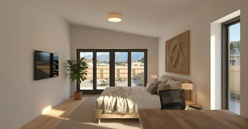 New Modern Farmhouse with ADU and mountain views, featuring fire-resistant construction and built almost entirely with non-combustible materials. This stunning new build in Altadena features an all-light-gauge steel-framed home with a 3-bedroom, 2.5-bath main house, an attached garage, and a flex space (2,522 SF), plus a detached 1-bedroom, 1-bath ADU (525 SF). The open-concept design highlights a gourmet kitchen with quartz counters, custom cabinetry, stainless steel appliances, and a spacious great room with. The ADU offers endless possibilities as a rental unit, guest suite, home office, recreation area, or multi-generational living space, complete with its own kitchenette and washer/dryer. This exceptional property includes solar panels, landscaped outdoor living areas, and a stylish pergola, with an optional pool and deck upgrade available for those seeking a resort-style backyard. Located in a desirable Altadena neighborhood known for its natural beauty, this tight-knit community offers residents mountain views, outdoor recreation, and proximity to Pasadena's vibrant shops, dining options, and cultural attractions. Home is to be built. Renderings are for illustrative purposes only; final design, finishes, and landscaping may vary. Wall panel details can be provided upon request, along with additional design options and exterior choices.