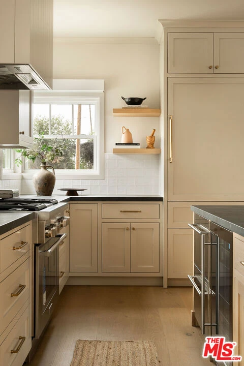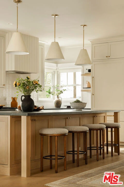 Originally built in 1948 and thoughtfully rebuilt in 2025, this beautiful 4 bedroom, 3 bathroom Altadena home spans approximately 2,110 square feet and blends classic California charm with modern design and resilience. Reconstructed on its original footprint and foundation following the Eaton Fire, the residence was developed with a deep commitment to craftsmanship, safety, and longevity, resulting in a home that feels both grounded in its history and entirely renewed. A newly landscaped front yard welcomes you inside to a bright, open-concept main living area designed for effortless everyday living. At the front of the home, a charming sitting area with a bay window captures beautiful natural light. The showstopping kitchen sits at the center, appointed with a large island, porcelain countertops, custom soft-close cabinetry, designer lighting, and a full Thermador appliance suite including a range and oven, double-drawer refrigerator, dishwasher, undercounter microwave, and beverage drawer. Just beyond, the family room provides a relaxed gathering space with easy flow to the outdoors. Off the main living area, the first bedroom with French doors offers flexibility as a guest room or office, with a full bath nearby featuring curated tilework. Two additional bedrooms are complemented by custom hallway built-ins and a washer and dryer conveniently located in a sizeable hallway closet near the bedrooms, complete with shelving for additional storage. Privately positioned at the rear of the home, the primary suite offers a serene retreat with a walk-in closet and a spa-like bath featuring a frameless glass shower, custom cabinetry, and designer fixtures. A sliding door opens to its own patio, creating an effortless indoor-outdoor connection. Outdoor living is thoughtfully designed, featuring an elevated patio for al fresco dining and a grassy side yard surrounded by custom landscaping and hardscaping with underground irrigation. Modern upgrades include a Control4 smart home system with Lutron lighting, Sonos audio, central iPad control, security cameras, Starlink internet (two years prepaid), new HVAC, a tankless water heater, upgraded electrical and plumbing, underground power lines, and solar panels. Fire-conscious construction- complete with a spark-resistant composition roof and concrete composite siding- adds peace of mind, while a high-ceiling two-car garage completes the property. Located in Altadena near beloved local restaurants, coffee shops, and neighborhood markets, with easy access to hiking trails and the scenic San Gabriel foothills, this thoughtfully rebuilt residence offers modern comfort, elevated design, and a fresh chapter in a cherished community.