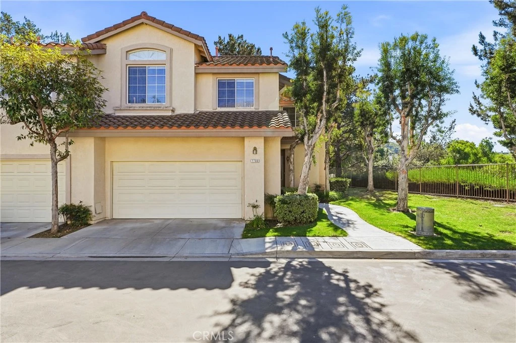 Welcome to this highly upgraded end-unit home, ideally situated at the end of a quiet cul-de-sac within the gated Viewpoint North community. Offering 3 bedrooms and 2.5 bathrooms, this residence delivers a serene lifestyle enhanced by beautiful canyon and city views from the kitchen and upper-level windows. Step inside to discover neutral-tone wide plank flooring, custom shutter window coverings, and thoughtfully curated designer finishes throughout. The inviting living room features soaring ceilings, recessed lighting, a cozy fireplace, and an open-concept layout that seamlessly connects to the kitchen.The spacious kitchen is large enough to accommodate a full dining table and showcases quartz countertops, sought-after shaker-style cabinetry, stainless steel appliances, and custom storage solutions. The adjacent dining area provides direct access to the lower-level patio, where you can enjoy peaceful views of the greenbelt that surrounds the home from front to back.Upstairs, the primary suite offers high ceilings, recessed lighting, and a private balcony with tranquil tree views. The primary bathroom is generously sized and features a grand dual-sink vanity with shaker-style cabinetry, a walk-in shower, and a large walk-in closet. The conveniently located upstairs laundry room adds everyday ease.Two additional bedrooms and a full bathroom are thoughtfully positioned at the opposite end of the hallway, offering privacy from the primary suite.This meticulously maintained home is truly a rare find. Additional highlights include an attached garage with storage, upgraded finishes throughout, an open floor plan, and desirable end-unit privacy, Upgraded Electrical Panel, Car Charge Outlet, Water Softener & Osmosis System. Residents of Viewpoint North enjoy resort-style amenities including pools, spas, and tennis courts. Ideally located near shopping, dining, the 91 Freeway, 55 Freeway, 241 Toll Road, and award-winning schools.