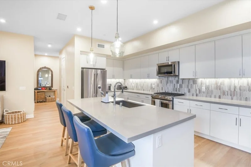 PRICE TO SELL **Modern End-Unit Condo in Gated 100 WEST by Toll Brothers** Welcome to this stunning end-unit condo in the prestigious gated community of 100 WEST by Toll Brothers. This luxurious two-bedroom, two-bath home features a spacious single-level floorplan with soaring ceilings that create a bright, open atmosphere. Enjoy a perfect blend of modern living and prime location — just minutes from Disneyland, Downtown Disney, and with easy access to the 5, 91, and 57 freeways. Inside, the home showcases high-end finishes throughout. The gourmet kitchen includes Quartz countertops, a large island ideal for entertaining, and stainless steel appliances including a refrigerator and stove. The primary suite offers a walk-in closet and an ensuite bathroom with dual sinks and a large glass-enclosed shower. Additional highlights include custom paint, vinyl wood flooring throughout, a Ring doorbell, and a built-in alarm system for added security. Don’t miss your opportunity to own this stylish, move-in-ready home in one of Anaheim’s most desirable communities.
