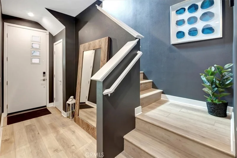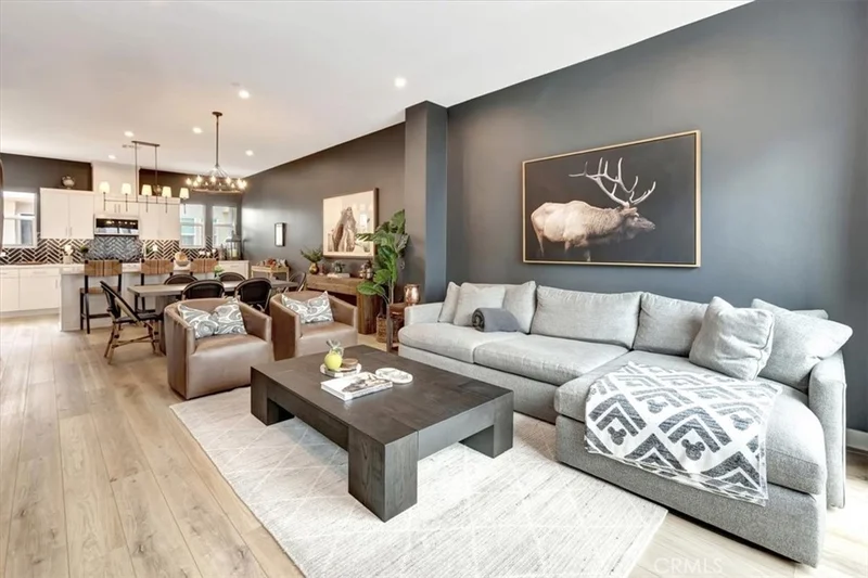 Modern Elegance Meets Effortless Comfort in the Heart of Anaheim! Step into a stunning blend of luxury, style, and smart design in this beautifully appointed 3-bedroom, 3.5-bathroom home, where every detail has been carefully curated for modern living. Nestled just minutes from the iconic Packing House and the magic of Disney, this residence offers the perfect fusion of sophistication and convenience. From the moment you enter, you’ll be captivated by the open floor plan bathed in natural light, accentuated by designer Sherwin Williams' paint, LED recessed lighting, and stylish LVP Provence Moda Living “At Ease” flooring that flows seamlessly throughout the home. The gourmet kitchen is a dream, featuring sleek quartz countertops, custom tile backsplash, and luxury finishes that elevate everyday living. Retreat to the spa-inspired primary suite, where a Hydrorail Shower with a 10” Rainhead promises indulgent relaxation along with a custom walk-in closet! All bedrooms are pre-wired for TVs and the primary bedroom is adorned with remote-controlled custom window treatments from The Shade Store in Fashion Island, adding both function and elegance. Thoughtful upgrades abound—from Restoration Hardware and Arhouse chandeliers that dazzle above, to the added custom linen cabinetry and the full interior insulation package for year-round comfort. The 2-car garage boasts an EV charger and epoxy flooring, and the roof has solar panels, ensuring both eco-conscious and future-forward living. Enjoy a suite of luxury amenities, including a pool, spa, two dog parks, barbecue areas, recreational grass areas, and walkable paseos throughout the community. This home is more than just a place to live—it’s a lifestyle. Head up to the private rooftop deck to take in panoramic views, entertain under the stars, or enjoy your morning coffee in complete serenity. With close proximity to The Honda Center, Angel's Stadium, vibrant dining, shopping, and entertainment, you’ll find yourself perfectly situated to enjoy the very best of Southern California! Sellers are also willing to repaint the home white, or offer a credit to have the home repainted if the buyers do not want the charcoal walls. https://digitaladdictstudios.tf.media/x2258361