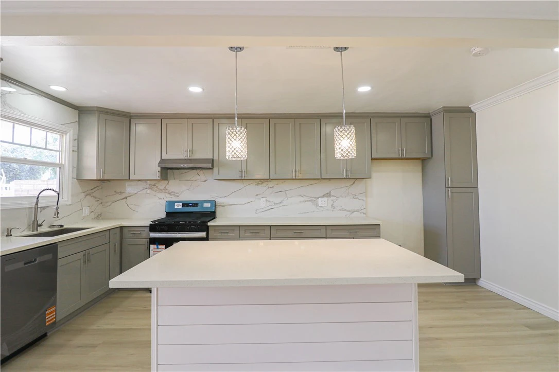 Welcome to your new home, a beautifully refreshed residence in the heart of Anaheim that perfectly blends modern style with functional living. This 3-bedroom, 2-bath home has been recently remodeled with a thoughtful layout designed for today’s lifestyle. Enjoy fresh interiors, including updated vinyl plank flooring throughout the house, contemporary recessed lighting, and freshly painted walls. The heart of the home is the expansive, light-filled kitchen. It features sleek quartz countertops, a dramatic marble-style backsplash, brand-new dishwasher and gas range, and custom grey shaker cabinetry. The oversized center island with shiplap detailing provides the perfect spot for morning coffee or casual evening gatherings. The dining area has been cleverly reimagined as a dedicated office space, perfect for those who work from home or need a quiet study nook. Step into the large, sun-drenched enclosed patio. Featuring durable tile flooring and wrap-around windows, this versatile space is ideal for year-round entertaining, a home gym, or a secondary lounge. Both bathrooms have been stylishly updated. One features a deep soaking tub with marble-patterned tile, while the second offers a clean, spacious shower. The exterior offers a private courtyard with paved surfaces for low-maintenance care, 2-car garage with brand-new garage door, and ample space for RV or oversized vehicle parking. Located in a quiet neighborhood with easy access to all that Anaheim has to offer, this home is move-in ready and waiting for its next chapter.