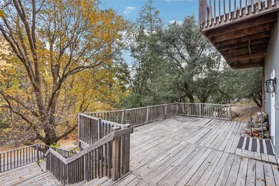 Come experience all four seasons in Angelus Oaks, where golden oaks glow in autumn and a dusting of snow transforms the landscape in winter. Tucked away from the road in a peaceful mountain setting, this beautifully updated three-story home offers the perfect blend of comfort, charm, and scenic serenity. The entry level welcomes you with a cozy family room featuring a wood-burning stove, along with a laundry area and additional storage—ideal for mountain living. Stay warm year-round with both central heat and the inviting wood stove. The main level is the heart of the home, showcasing a spacious living room highlighted by a dramatic A-frame window that fills the space with natural light and captures breathtaking forest views. Gather around the fireplace or step outside to the wraparound deck—perfect for entertaining or simply soaking in the tranquil surroundings. The adjoining dining area and kitchen feature freshly painted cabinetry and a bright, open feel. Two comfortable bedrooms and a tastefully updated full bathroom complete this level. Upstairs, a generous loft-style bedroom with a closet offers a unique retreat. Enjoy your morning coffee or unwind in the evening on your private third-floor deck overlooking the forest canopy. Recent upgrades include a striking black front door and fresh interior and exterior paint, adding to the home’s modern mountain appeal. Located just 20 minutes from Redlands, this inviting escape offers fresh air, peaceful living, and unforgettable, star-filled nights.