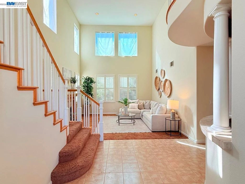 Open House Sat, Sun 1 PM-4 PM. Stunning 5-bedroom, 3-bath residence offering 3,604 sqft of beautifully designed living space on an expansive ~12,000 sqft lot, nestled in a quiet, desirable neighborhood. Step inside to soaring ceilings, a grand staircase, and an elegant formal dining room. The open-concept kitchen and family room create the perfect space for entertaining, featuring abundant cabinetry, granite tile countertops, a large island, and stainless steel appliances including a new refrigerator. The main level includes a bedroom, full bath, and laundry room. Upstairs, enjoy 4 spacious bedrooms plus a huge bonus room, perfect for a home gym or media space. The luxurious primary suite boasts a private balcony with sunset views and a spa-inspired bathroom. Fresh interior paint, new laminate flooring in the family and dining rooms, new luxury vinyl plank flooring in the downstairs bath and primary closet enhance the home’s appeal. Plantation shutters add timeless elegance throughout. The backyard is an entertainer’s dream with a large patio, basketball court, tranquil pond with waterfall, and park-like setting. Low-maintenance front yard with artificial turf. Includes a spacious three-car garage. Conveniently located near schools, shopping, dining, parks, freeway access, eBART.