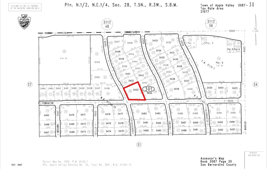 ±0.96ac Multi-Family zoned vacant land offering. Situated at the northeast corner of Powhatan Rd & Rancherias Rd in the Town of Apple Valley. Zoning is R-M (Multi-Family Residential) allowing up to 20 units per acre. Curb, gutter, and sidewalk already existing along the south side of the parcel fronting on Powhatan Rd. Just one block south of Yucca Loma Elementary School. Close proximity to parks, goods, and services. All utilities in the street fronting the site. Excellent opportunity to acquire vacant land for future apartment or townhome development.