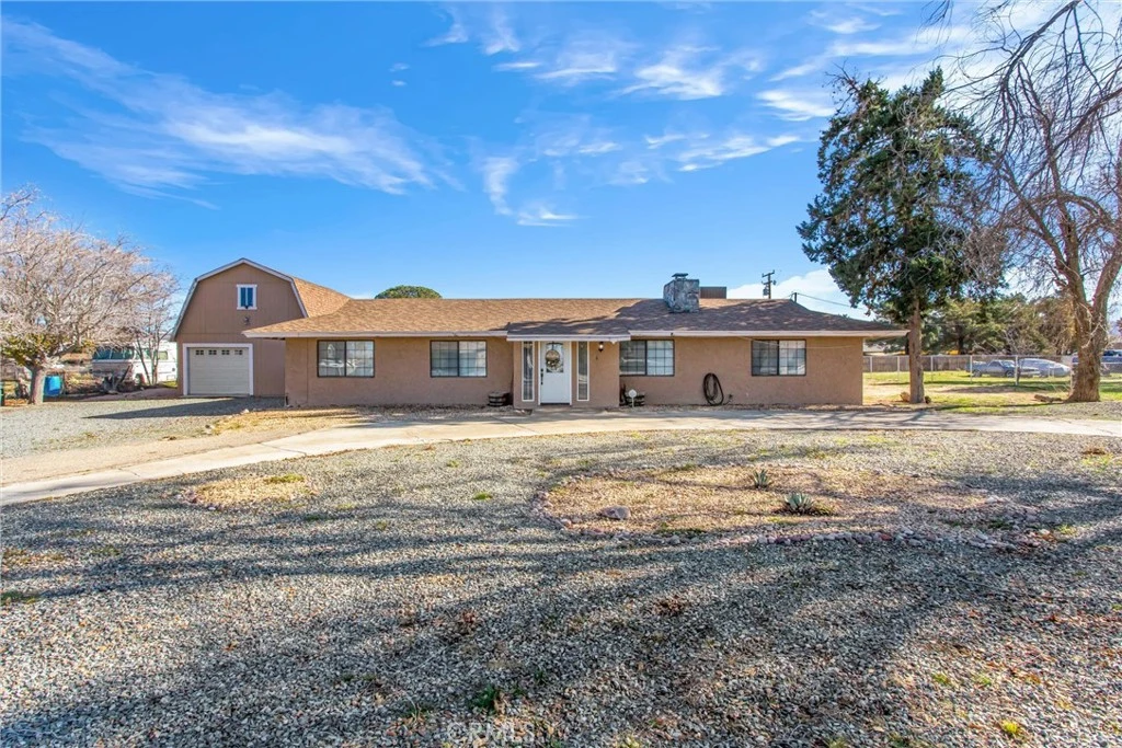 Welcome to the great city of Apple Valley! This home offers peace and tranquility on a spacious lot with tons of parking and a convenient roundabout driveway. Step inside to a cozy living room featuring a gas fireplace and an open kitchen design with a large peninsula, perfect for serving family and friends. The smart floor plan offers a west wing with three bedrooms and two large baths, while the east wing provides its own private bedroom and 3/4 bath for added privacy. You can enjoy your summers in your very own private in-ground pool and save on electric bills with energy-efficient Solar Panels. The exterior provides a large side yard with space to park three RVs and an extra-large garage with high ceilings and a built-in second-story loft that can easily be built out into an ADU. Perfectly situated for convenience, this property is just minutes from major shopping hubs like Jess Ranch Marketplace and Apple Valley Commons, and sits within the Apple Valley Unified School District near Sitting Bull Academy and Apple Valley High School. For outdoor enthusiasts, the historic Apple Valley Golf Course and local hiking trails are just a short drive away. With easy access to Highway 18 and the I-15, this home is move-in ready and perfectly positioned for the future. Schedule a showing today!