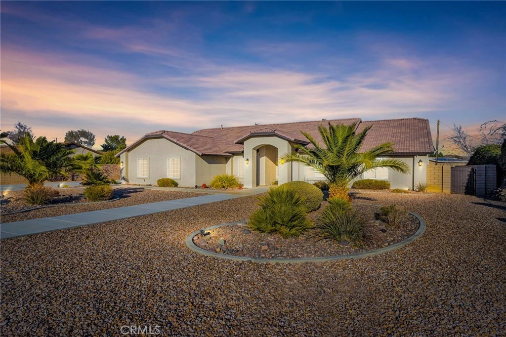 Welcome to this beautiful Apple Valley home situated on a spacious lot of over half an acre, offering room to spread out, store toys, and truly enjoy desert living. The paid off solar panels is a huge money saver. The fully fenced property features block wall fencing, RV parking, an attached 3-car garage, eye-catching curb appeal with mature, well-maintained landscaping, a security camera system, and a custom dog run with artificial grass. Inside, you’ll find vaulted ceilings, waterproof vinyl flooring, and a welcoming living room anchored by a stunning stacked-stone fireplace. A formal dining room provides the perfect setting for gatherings, while a dedicated office and bonus room offer flexibility for work, hobbies, or additional living space. The heart of the home is the massive kitchen, complete with a large island, barstool seating, stainless steel appliances, pantry, recessed lighting, and a bright breakfast nook surrounded by windows that flood the space with natural light. The private primary suite is a true retreat, featuring its own fireplace, a spacious walk-in closet, a soaking tub, and a beautifully finished tile shower. An indoor laundry room adds convenience with built-in cabinets, counters, and a utility sink. Step outside to a large covered patio, perfect for relaxing or entertaining, with plenty of space to customize the yard to your vision. Solar panels will be paid off at close of escrow, adding long-term energy savings and peace of mind. Located in one of Apple Valley’s most desirable areas, this home is close to top-rated schools, Jess Ranch Marketplace, and some of the best shopping and dining the High Desert has to offer. This is the space, comfort, security, and location you’ve been waiting for.