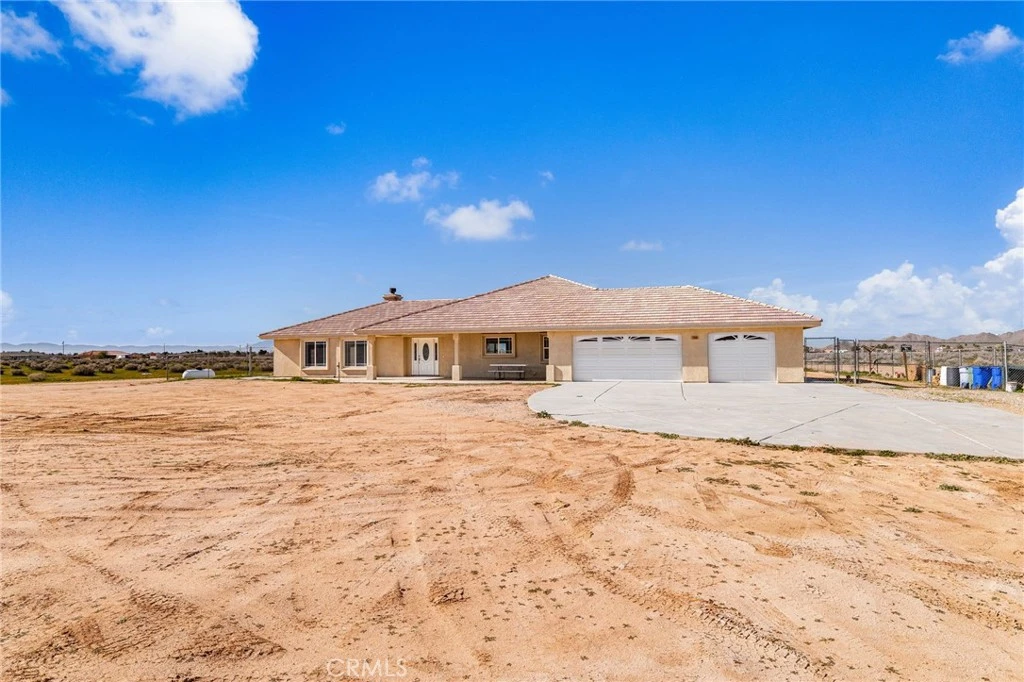 CUSTOM TURNKEY ONE STORY, MOUNTAIN VIEWS, LOW UTILITY COSTS, AND NO NEIGHBORS... A beautifully maintained single-story home that has true pride of ownership, offering endless privacy, and space. Located on a giant 38,895 sq ft lot. Featuring 4 bedrooms, 2.5 baths, 2,259 sq ft of true living space, and fresh interior and exterior paint. Have control over your utility bills with well water, propane gas, and septic, this property delivers lower monthly overhead, more control, and wide-open living. This move-in-ready home showcases a open concept floor plan with high ceilings, dual-pane windows, and a tasteful blend of tile and fresh carpet throughout. The light-filled living room opens to an entertainer-friendly layout, while the open kitchen features recessed lighting, abundant cabinetry, a large peninsula and center island that is equipped with stainless steel appliances, a walk-in pantry, and an adjoining dining area. The family room connects seamlessly to the kitchen and includes a wood-burning fireplace, direct patio access, and a nearby guest bath—ideal for hosting. All four bedrooms are well sized, with a large private primary suite offering an additional room off of the primary mountain views, a large walk-in closet, and a spa-style bath with dual sinks, soaking tub, glass-enclosed shower, and private commode. Additional highlights include a dedicated laundry room, covered patio with ceiling fans, white picket fence enclosure with lush grass, oversized concrete driveway, and a finished 3-car direct-access garage with ample off-street parking. Enjoy peaceful desert living with no neighbors, panoramic views, and room for all your vehicles, toys, or future plans—just minutes from shopping and dining. This is Apple Valley living at its best: clean, efficient, spacious, and truly turnkey.