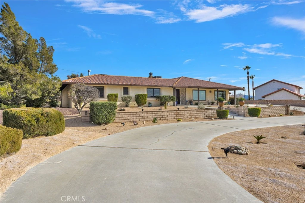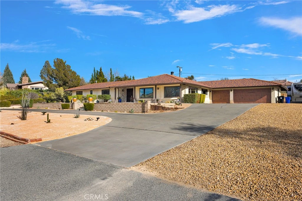 Welcome to this elegant desert estate offering 4 bedrooms, 3 bathrooms, and 2,725 square feet of beautifully upgraded living space, complete with a spacious three-car garage and RV access. From the moment you arrive, the circular driveway and professionally designed desert landscaping create striking curb appeal, all set against breathtaking panoramic views of the desert horizon and the San Gabriel Mountains. This home has been thoughtfully renovated with high-end finishes, blending timeless craftsmanship with modern efficiency. Inside, you’ll find travertine flooring throughout, custom knotty alder doors, crown molding, hand-textured walls, and recessed lighting that elevate every space. Oversized picture windows fill the home with natural light, while Wi-Fi remote-controlled blinds add both convenience and sophistication. The fully renovated chef’s kitchen is a true showpiece, featuring Bosch Professional Series appliances, double ovens, soft-close cabinetry, pull-out drawers, and under-cabinet lighting—perfect for both everyday living and entertaining. The spacious family room offers a custom masonry fireplace, creating a warm and inviting gathering space. Retreat to the luxurious primary suite, complete with its own fireplace sitting area, spa-style soaking tub, walk-in shower, and custom closet cabinetry. Step outside to your private courtyard-style backyard oasis with covered patios, lush grass area, and ample space for entertaining. The property also offers RV parking with a 50-amp hookup, additional emergency electrical hookup, and generous storage solutions in the three-car garage. With dual high-efficiency HVAC systems, smart thermostats, upgraded ducting, and extensive system improvements throughout, this home delivers not only beauty—but peace of mind. A rare opportunity to own a meticulously upgraded residence where luxury, comfort, and desert views come together seamlessly.
