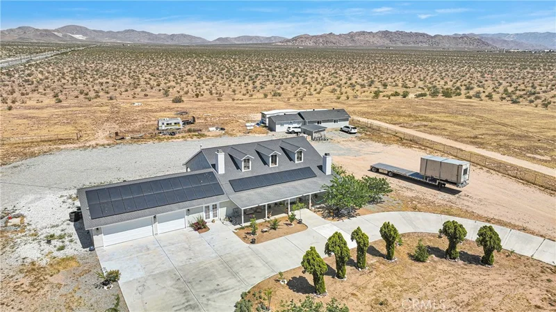 ******SO MUCH POTENTIAL COMMERCIAL / MULTI USE ZONING******* Right on the SPECIFIC PLAN of Apple Valley****** Own your own ranch in North Apple Valley. This home is located on over 9 acres of land (partially fenced), has views in all directions. Main house offers a huge living room with fireplace, a 3 car garage, a formal dining room, and a spacious kitchen and a LARGE ISLAND! Back house offers 1,100 sq ft of living space; 2 bedroom 2 bath. This property is in the specific plan for Apple Valley's Commercial / Industrial Development. Less than a mile from the Walmart Distribution Ctr and Big Lots Dist., approx 1 mile from BrightLine train (coming soon) and the 15 freeway.