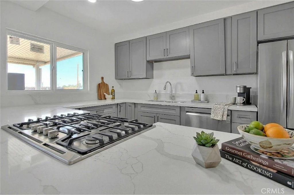 Welcome to this stunning 3-bedroom, 2-bathroom corner-lot home in Apple Valley, situated on over an acre of land. This beautifully updated home features an open floor plan, a cozy rock fireplace, and new luxury vinyl plank flooring throughout. Enjoy the fresh interior paint, modern light fixtures throughout, and a fully remodeled kitchen with brand-new cabinets, quartz countertops, stylish fixtures, and new appliances. Both bathrooms have been tastefully updated, and the home also includes energy-efficient windows, a new AC unit, and a circular driveway. Take in the breathtaking mountain views from this move-in-ready gem.