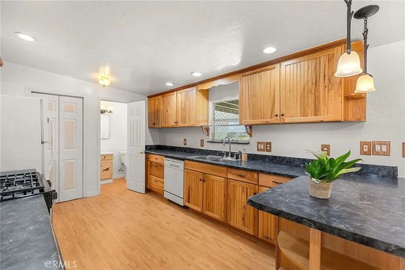 Charming half acre ranch style home located in a quiet neighborhood of Apple Valley! This 3 bedroom, 2 bathroom home features a spacious floor plan with a welcoming living room as you enter the front door that connects seamlessly to the spacious kitchen with tons of storage and counter space. Step outside to a spacious backyard—an open canvas ready for your vision. Large covered patio and 2 extra storage sheds. Home has a newer roof, recently installed. Nestled on over half an acre of land, there's ample space for parking and storage for recreational vehicles and more. A fantastic opportunity for buyers looking for outdoor space, and affordable living. Call today to schedule a private tour!