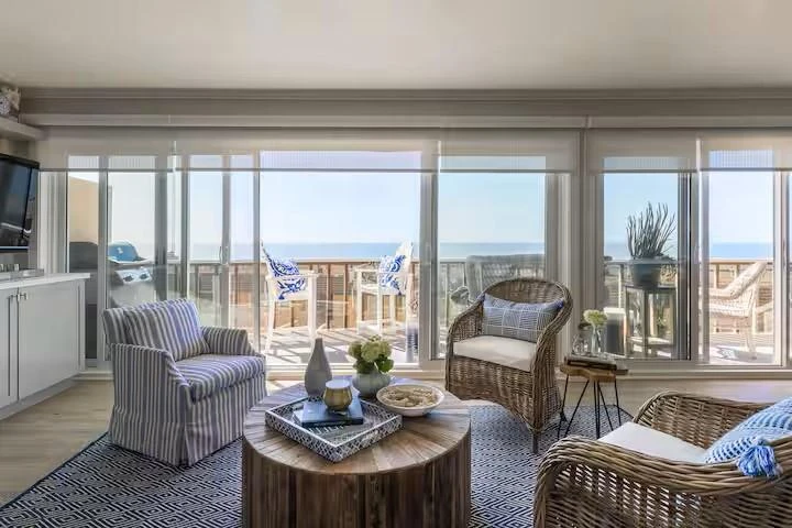 Sea breezes and beautiful ocean views from Capitola to Monterey greet you from your 40-foot deck at RDM Lookout! This furnished chic home features an open beach design with hardwood floors, gourmet kitchen w/quartz counters, coffee bar & well designed, comfortable living room with cozy fireplace. Enjoy big views from, the living, dining, kitchen, and 3rd bedroom or step outside from 1 of 3 sliding doors to the patio/deck with lounge seating and a gas grill-perfect place to hang out after basking in the sun at the Beach or Pool-by far the best spot in this home! Living is easy with in-house laundry and no worries on parking with a tandem garage which includes parking for 1 car and 2nd stall is an enclosed storage area perfect for boogie boards, beach chairs, beach toys, etc. and added free street parking in front of the complex. WAIT-there's so much more: Ocean View Pool-open year round; Incredible Rio Beach & Downtown only 200 yards away w/Venus Spirits/Restaurant, Venus Pie/Coffee, Pixie Deli, & the local Liquor store - for any last-minute lotto tickets or things you may have forgotten! PLUS Seascape Golf Course right up the street! NOTE: This home is currently a vacation rental generating incredible income (2024=126K+ & 2025=$115K+) Live the Dream!