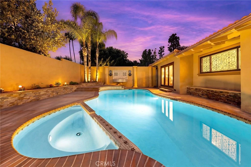 Beautifully single-story pool home located in the highly sought-after Highland Oaks area of North Arcadia. This home offers 2,600 sq. ft. of living space on a 9,140 sq. ft. lot. From the moment you arrive, the home’s exceptional curb appeal stands out, featuring a professionally landscaped front yard with a rose garden, palm trees, a sculptural water fountain, and a welcoming front porch. Step through the custom iron front door into an expansive open-concept living room, highlighted by an elegant onyx fireplace and a wall of glass doors that seamlessly connect indoor and outdoor living. The backyard is truly an entertainer’s dream, featuring a newly renovated cabana and outdoor kitchen complete with a built-in BBQ grill, Italian pizza oven, and a stunning backlit onyx bar. The space seamlessly flows into a covered patio, enhanced by a tranquil fountain. This home seamlessly blends classic character with modern updates. Recently remodeled in 2026, it features fresh interior paint throughout and brand-new flooring across the main living areas, open layout designed for today’s lifestyle. A newly constructed patio cover enhances the outdoor space with both style and functionality. Additional upgrades completed by the previous owner further elevate the home’s overall appeal. Inside, the bright and spacious kitchen is thoughtfully designed with a dramatic curved window overlooking the serene front yard. A striking 9-foot marble island serves as the centerpiece, complemented by an inviting eat-in nook and a generous formal dining area. High-end appliances and a designer tile backsplash complete this impressive chef’s kitchen. This home features 4 spacious bedrooms, a convertible den, and a dedicated office, including two luxurious master suites. One master suite offers direct access to a private patio and pool area. There are 4 appointed bathrooms, including two master baths with steam showers and intricate medallion mosaic tile work. Additional highlights include gleaming wood flooring, custom cabinetry, copper plumbing, upgraded windows, and designer recessed lighting throughout. The finished attic above the garage provides flexible space for a playroom or storage. A two-car attached garage offers direct access to a separate laundry room. Close to Santa Anita Golf Course, Westfield Shopping Center, LA Arboretum, entertainment, fine dining, entertainment, and within the highly regarded Arcadia School District, this exceptional home truly has it all.