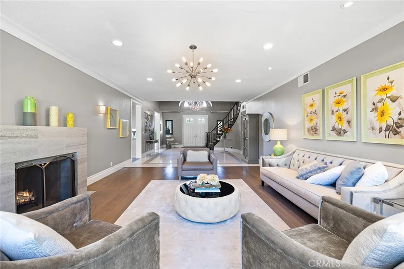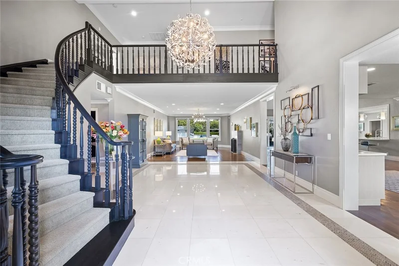 Welcome to your own palatial retreat at 1328 Oaklawn Rd, nestled in the prestigious Santa Anita Oaks Estate area of beautiful Arcadia. This two-story English Tudor estate offers elegant living spaces and timeless design with spectacular views of the San Gabriel mountains. You will be welcomed at an impressive Italian marble entry, adorned with a chandelier and winding staircase. This home has a thoughtfully designed floor plan filled with natural light creating a warm and inviting atmosphere. It has undergone major renovations totaling over $700,000, ensuring luxury and modern comfort throughout. The house features five en-suite bedrooms ideal for a multigenerational household. The main living spaces include a large living room with a fireplace and a formal dining room with bay window in a classic diamond-paned leaded glass style. There is an oversized family room with a fireplace and soaring ceiling. Sliding glass doors offer a grand view of the backyard. The gourmet kitchen is equipped with a center island, granite counters and new cabinets. On the main level, you’ll find a private office with built-in bookcases, two additional en-suite bedrooms, a laundry room, and a powder room. Upstairs, the massive master suite offers a retreat area, fireplace, and bathroom with a spiral staircase leading to the kitchen below. Two additional spacious en-suites on the upper level each with a walk-in closet, and one boasts a canopy-covered balcony with a spectacular backyard view. The whole interior of the house is complemented by professionally selected designer furnishings enhancing style and comfort. The backyard is a true oasis with mountain views, a sparkling pool and spa, and an expansive grassy area. Fully owned solar panels reduce energy costs and serve as a patio cover. Fruit trees flank the backyard, adding beauty and bounty. Don’t miss out on this extraordinary estate. Select design furnishings are available for purchase by those seeking a move-in-ready experience. Schedule a private tour today and experience the unmatched elegance and comfort for yourself!