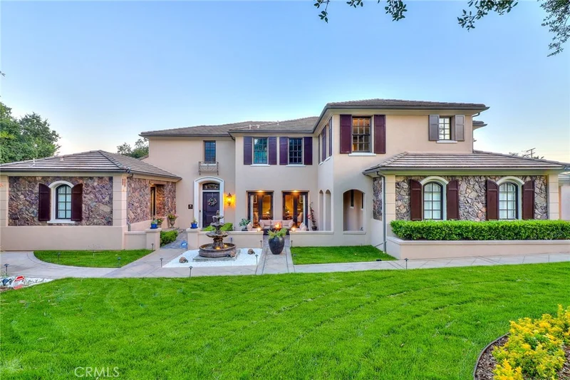 Welcome to luxury resort living in the exclusive guard-gated Anoakia community of Arcadia. This stunning estate offers 6 bedrooms (all ensuite), 1 office, 7 bathrooms, and a 3-car garage plus bonus room. The main level features two generously sized ensuite bedrooms plus a private office, ideal for multi-generational living or working from home. Upstairs, you’ll find three master suites and an exceptional Presidential Suite, all designed with elegance and privacy in mind. The front and backyard showcase brand-new water fountains and are finished with Castile Deva Acadia flooring, made in Spain. The home has been completely refreshed with brand-new exterior and interior paint, accented by gloss-finished stone, custom electric curtains, and a fully integrated advanced smart home system. Soaring ceilings and oversized windows flood the home with natural light. The formal dining room sits just off the hallway, highlighted by a crystal chandelier and oversized French doors, creating a picture-perfect space for gatherings. A pantry with Samsung wine cooler connects seamlessly to the dining room. French doors open to the front yard fountain, offering the perfect setting for afternoon tea with serene mountain views. The fully remodeled gourmet kitchen is a true showpiece, featuring top-of-the-line Viking commercial-grade appliances, Italian-made travertine flooring, quartz backsplash, Ruvati deep sink, and another crystal chandelier. An oversized quartz waterfall island anchors the space, surrounded by abundant custom cabinetry. Highlights include a Viking 7 Series range with teppan, grill, simmer burner, and Cool Lite LED lighting, a custom Decor smart refrigerator and freezer, Grohe pot filler and faucets, and a second kitchen area with a Viking single burner pot and wok station connecting to the breakfast nook. The completely remodeled Presidential Suite offers a private retreat. Enjoy a Kohler freestanding soaking tub, wall-mounted TV, expansive walk-in shower with custom frameless glass, TOTO Neorest bidet, and winter heat lamp. The suite also includes an attached office or nursery, makeup counter, spacious walk-in closet, and ultra-modern European cabinetry. Adjacent to the suite is a large office or second family room with custom built-ins. Additional features include a side-yard sport court, new concrete block walls, Rheem A/C systems, commercial-grade Culligan water system, smart sprinkler and drip systems with B-hyve, and more.