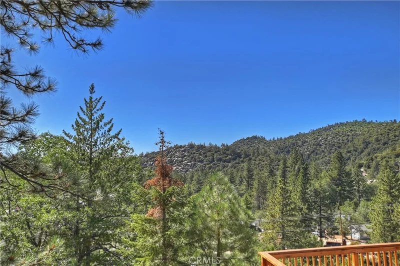 This home is a two bedroom, two bathroom gem in Arrowbear. With upgraded stainless steel appliances, the kitchen boasts modern convenience and fantastic view out the kitchen window. The stunning tree-lined views outside create a serene ambiance, complemented by the vaulted ceilings adorned with open beams in the great room, enhancing the spacious open concept living area. Transitioning seamlessly to a back deck, the home invites you to enjoy the scenic beauty. The two bedrooms are conveniently situated downstairs, accompanied by a beautifully designed bathroom. Located in Arrowbear, this residence serves as an ideal commuter location and a wonderful getaway. Inside, the space is illuminated with ample natural light, further accentuating the beautiful gray tones that give the interior stylish touch. Home is equipped with air conditioning as well.