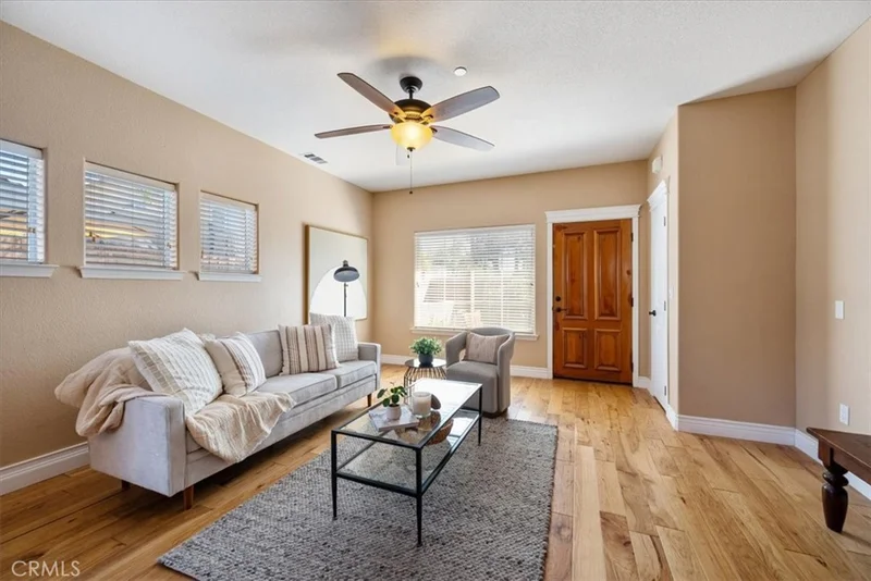 Tucked into the Spanish Oaks community just off South Elm Street, this two-story home offers a comfortable place to settle in while staying close to the heart of Arroyo Grande and just minutes from Pismo Beach. Inside, wood floors run through the living and dining areas, creating a warm space to gather and unwind. The living area flows easily into the kitchen, which offers generous counter space, bar seating, and a large pantry for added storage. A half bath is conveniently located on the main level, along with two patio doors leading to the backyard and side yard for easy indoor-outdoor living. Upstairs you’ll find the laundry room, two additional bedrooms, and a full hall bathroom, along with a spacious primary suite. The primary bedroom includes a large walk-in closet and a sliding door that opens to a deck overlooking a mature palm tree and welcoming the coastal breezes. The primary bathroom offers dual sinks, a soaking tub, and a separate shower. The yard is designed for easy maintenance with turf and patio space, ideal for enjoying the Central Coast’s mild weather. Located at the end of the street, the home also benefits from additional parking and includes a two-car garage. Start your next chapter in a home that puts the Central Coast lifestyle right at your doorstep!