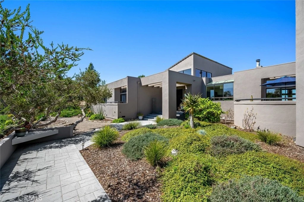 Commanding a breathtaking vantage point within the exclusive gated enclave of Falcon Ridge Estates, this extraordinary contemporary single-level estate captures sweeping, unobstructed views of the Pacific Ocean, golden dunes, and rolling coastal hills. Set on approximately 2.5 acres of pristine land, the property offers rare privacy, grandeur, and limitless potential. A long, graceful approach through mature, manicured landscaping leads to an impressive three-car garage and a custom-crafted entry. Inside, walls of glass dissolve the boundary between indoors and out, revealing awe-inspiring vistas from nearly every room. The dramatic sunken living room is a showpiece with soaring ceilings, expansive windows, and an abundance of natural light creating a space that is both striking and serene. The adjacent family room offers a more intimate retreat, anchored by a fireplace and opening seamlessly to the expansive decks beyond. Designed for effortless entertaining and elevated daily living, the home features multiple dining experiences, from a refined formal dining room to a sunlit breakfast nook and unforgettable al fresco settings. The kitchen is sleek and sophisticated, appointed with custom tinted cabinetry, luminous countertops, a generous island with seating, and stainless steel appliances. Over 1,600 square feet of view decks wrap the home, inviting you to entertain under the stars, host unforgettable gatherings, or simply savor the tranquility of the coastal horizon. Refined amenities elevate the experience, including dual HVAC systems, a refrigerated wine cellar, and a panoramic-view office, ideal for inspired work-from-home living or easily transformed into a fifth bedroom. The primary suite is introduced through elegant French doors and features its own fireplace, direct access to the deck and private spa, and a spa-like ensuite bath with jetted soaking tub, dual-head walk-in shower, dual vanities, and a spacious walk-in closet. Additional bedrooms are thoughtfully positioned, with balcony access and serene outlooks. A separate wing offers a fourth bedroom and third bath perfect for guests, extended family, or private quarters. Outdoors, the grounds unfold like a private retreat, with lush vegetation, raised garden beds, and winding pathways that invite exploration and quiet reflection. Impeccably maintained, this is the one you've been waiting for!
