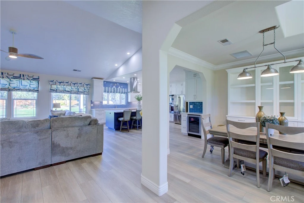 Beautifully upgraded 4-bedroom, 2.5-bath residence set on an expansive 1.15-acre parcel, welcoming you with a circular driveway, manicured grounds, and mature trees that create a serene, estate-like atmosphere. Inside, enjoy vaulted ceilings, a spacious open-concept family room with a stone-accented gas fireplace, and a thoughtfully designed layout ideal for everyday living. The chef’s kitchen, updated within the last few years, showcases quartz countertops, a large farmhouse sink, soft-close cabinetry, and stainless steel appliances including a Thermador 5-burner gas cooktop, Café double oven with air fryer, refrigerator, and Zephyr hood, anchored by an island with breakfast bar. A formal dining room with crown molding, skylight, built-in hutch, and wine bar adds an elevated touch. The primary suite is a true retreat, featuring outdoor access, a generous walk-in closet, and a spa-inspired bath with a fully tiled jacuzzi tub, walk-in shower, double sinks, and heated towel rack. Additional bedrooms offer comfort with carpeted floors and double door closets. The laundry room features tiled flooring, abundant cabinetry, and a utility sink, while attic access provides additional storage. Outdoors, the fully landscaped backyard offers a park-like setting with a pond, fountain, mature trees, an expansive covered patio with fans, a storage shed, and ample space for RV or boat parking. Concrete hardscaping, upgraded sprinklers, and new exterior lighting complete the setting. Notable highlights include a 3-car garage, paid-off 32 solar panels with Tesla Powerwall batteries, EV charging capability, security system with cameras, and a 230-foot well with pump at 180. This is a rare opportunity to own a luxury retreat that blends upscale finishes, energy efficiency, and peaceful surroundings just minutes from town!