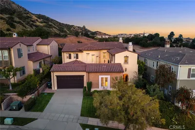 Nestled in the prestigious Rosedale Community this 5 Bedroom + fully paid off SOLAR home offers the perfect blend of modern sophistication, luxurious upgrades, and serene outdoor living. Every detail has been thoughtfully curated to provide both elegance and comfort in one of the area's most sought-after neighborhoods. Step into a world of refined design and comfort.Just off the entry, a rare 1st Floor bedroom suite with its own expansive private patio, creating a seamless indoor-outdoor retreat perfect for guests or multigenerational living.The open-concept floor plan unfolds into a formal dining room and living room flanked by a custom wood-paneled wall, centered around a contemporary fireplace that exudes warmth and style.At the heart of the home, the remodeled modern gourmet chef's kitchen impresses with sleek granite countertops, premium stainless-steel appliances, including a wall oven and 6-burner gas range with exhaust hood and a large island. Modern cabinetry, a walk-in pantry with custom wood shelving, and upgraded lighting complete this stunning culinary space.The primary suite redefines luxury with a walk-in closet and an expansive spa-inspired bathroom larger than many bedrooms. Relax in the oversized soaking tub or rejuvenate in the glass-enclosed oversized shower with built-in bench. Dual vanities, a private water closet, and extra storage add to the functionality and indulgence. Three additional bedrooms and a large laundry room with mud sink and storage complete the upper level.Custom built-ins, upgraded cabinetry, plantation shutters, and a paid-off solar system add comfort and efficiency throughout. The oversized three-car garage offers is thoughtfully designed with coves for storage.The private backyard is an entertainer's dream, framed by lush, fragrant landscaping that fills the air with the scent of Asian jasmine, lemon and lime trees, roses, basil, rosemary, and lavender. Two covered patios offer elegant spaces for al-fresco dining and lounging, while the outdoor kitchen with built-in grill, Blackstone griddle, and a cozy fireplace, creates the ultimate SoCal entertaining experience.Enjoy mesmerizing sunset views across the mountains and the greenbelt.Don't miss Rosedale's amenities, Jr. olympic salt-water pool, gym, etc!
