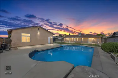 Beautifully updated 3 bed, 2.5 bath home offering comfort, versatility, and energy efficiency. Features include a remodeled kitchen with custom cabinetry, upgraded flooring, and updated bathrooms throughout. Spacious layout with abundant natural light and inviting living areas. Step outside to a covered patio overlooking a large backyard with a sparkling pool perfect for entertaining. The detached workshop includes an office and storage that is air conditioned, a half bath, ideal for hobbies or business use. Additional highlights include owned solar, security screens on front windows and entry, and ample parking. A rare property combining function, upgrades, and lifestyle.