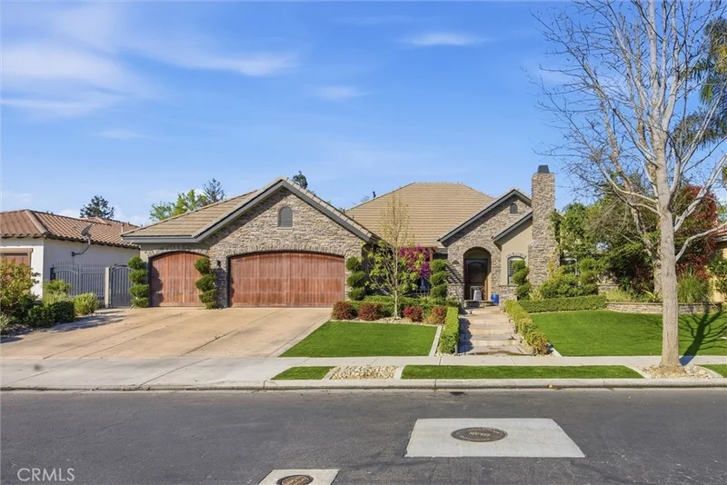 Welcome to this beautifully designed Mediterranean-style home located in the gated community of Seven Oaks at Grand Island in southwest Bakersfield. Built in 2006, the home offers approximately 3,900 square feet of living space on an expansive 11,326 sqft. lot. A striking stone-accented exterior and arched entry lead into a private courtyard with a charming fountain, creating a warm and inviting first impression. Inside, you’ll find rich wood flooring, high ceilings, and thoughtfully designed living spaces filled with natural light. The formal living room features a coffered ceiling, while arched doorways and architectural details add character throughout. The spacious floor plan offers multiple areas for both everyday living and entertaining, with a natural flow from room to room. Large windows bring in plenty of light and overlook the beautifully maintained grounds. Situated on a generous lot, the backyard is a true private retreat. It features a luxurious pool and spa perfect for unwinding after a long day, surrounded by plenty of space to relax, entertain, or create your ideal outdoor setting. Located within a quiet gated neighborhood with a small HOA of $177.50, this home offers both privacy and convenience in one of southwest Bakersfield’s desirable communities.