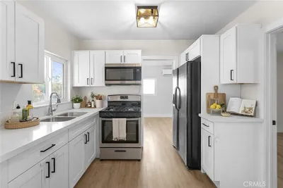 Beautifully updated 3-bedroom home blending modern style with everyday comfort. The interior features timeless white shaker cabinetry, sleek quartz countertops, and appliance package including stove/oven and refrigerator. Updated baseboards and durable luxury vinyl plank flooring flow throughout, creating a clean, cohesive look that’s both stylish and low maintenance. A newer roof and energy-efficient ductless AC units add comfort, efficiency, and long-term value. Situated on a large, fully fenced lot, the property offers plenty of outdoor space for entertaining, pets, or future expansion. A detached 2-car garage presents excellent potential for an ADU, making this an ideal opportunity for added income or multigenerational living. Conveniently located near an elementary school, this home also offers easy access to nearby destinations—just about 20 minutes to Redlands, approximately 15 minutes to Cabazon Outlets, and around 30 minutes to Palm Springs. Move-in ready and full of possibilities, this is a fantastic opportunity for homeowners and investors alike.