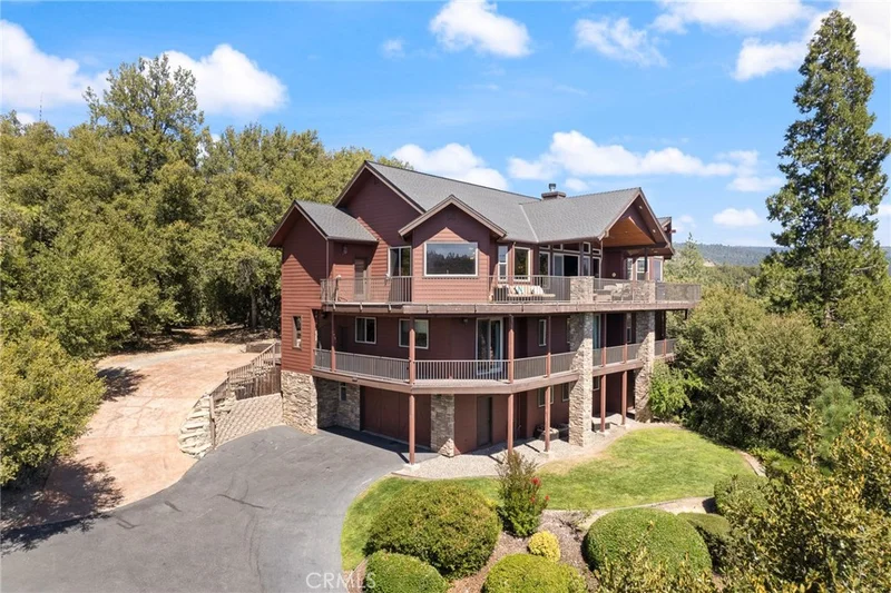 PRICE REDUCED $100,000 on this elegant, custom home in the highly desirable Bass Lake Estates neighborhood. Terrific lake views from nearly every room, & 180 degree views from the wraparound deck. Paved, year round access to the oversized .89 acre parcel, covered in mature oak trees and a lovely rock formation just outside the rear windows. The kitchen features stainless steel appliances including a Jenn-Air stovetop, KitchenAid oven and microwave, and a handy built-in ice maker. The double stainless steel kitchen sink offers panoramic lake views. The spacious living area offers a woodburning fireplace for cooler evenings, knotty pine vaulted ceiling, and sliding glass door access to the outside living space, where you may relax to cooling lake breezes, convenient propane piped BBQ, and propane fire pit. After a day on the lake, each of the 6 bedrooms provides immediate access to either a private bathroom or Jack & Jill bath, each with a step-in shower. The primary suite has a private balcony, dual walk-in closets, step-in shower, and "jetted tub with a lake view". Central heat and dual zoned AC create year round comfort, and the home is conveniently hooked up to Campora propane, the Bass Lake Water Company, and Madera County sewer systems. This truly remarkable home is priced at a much lower price per square foot than other Bass Lake offerings, and is a successful short term rental property. Make this lovely home your own, and by next July 4th you'll be viewing the famous fireworks from your front deck!