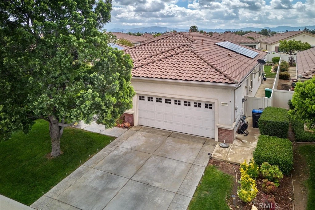 This charming single-story residence presents an exceptional opportunity for an enriched lifestyle within the highly desirable 55+ community of Solera in Beaumont. Perfectly situated on one of Solera's most picturesque streets. The interior features a well-appointed layout, including two comfortable bedrooms, two full bathrooms, and a versatile office/den. Tile and durable laminate flooring extend throughout the main living areas, while the bedrooms provide a cozy retreat with carpeting. At the heart of the home, the kitchen boasts beautifully stained cabinetry, providing ample storage. Step outside to discover a backyard that offers generous space for relaxation, gardening, and entertainment. Internet and basic cable TV are included and paid through the HOA. Home has solar (lease: $166.00 month). Newer air conditioner! Discover the vibrant, resort-style living at Solera. The centerpiece of the community is the clubhouse with a state-of-the -art fitness center, indoor walking tract, tennis and bocce ball courts, a pool and spa, billiards room, library, and versatile meeting/banquet spaces. Residents love the endless social scene: clubs, classes, events, and group activities. Positioned near the I-10, minutes from Cabazon Outlets, Morongo Casino, championship golf and the vibrant energy of Palm Springs. Welcome to the good life!
