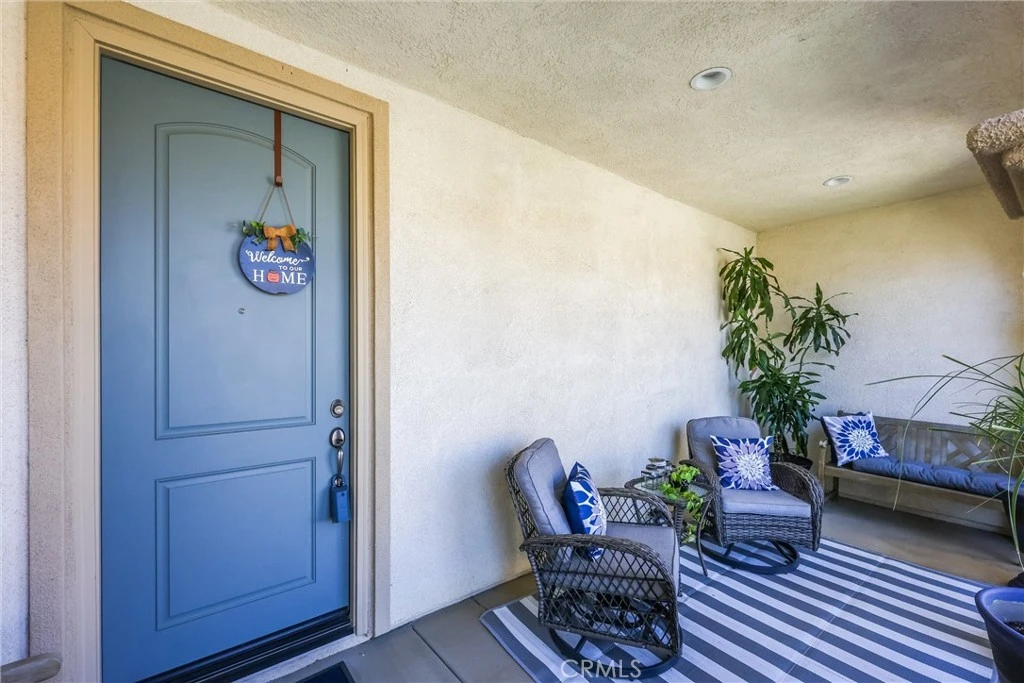 Welcome to 1619 Croton Street, a stunning Spanish Mediterranean two-story nestled in one of Beaumont's most desirable neighborhoods. The warm stucco facade, clay tile roof, and charming covered front porch create a welcoming first impression that carries all the way through the front door. Step inside to a soaring two-story entry foyer bathed in natural light from transom windows above the elegant staircase. The main level is designed for the way families actually live, flowing seamlessly between a formal living room and a generous open-concept family room, giving everyone room to gather or find a quiet corner. Crown molding and recessed lighting add polished finishing touches throughout. The chef-worthy kitchen is the true heart of the home. A large granite island with seating for four anchors the space, surrounded by gleaming white cabinetry, subway tile backsplash, stainless steel appliances, including a built-in double oven and refrigerator, and pendant lighting that sets the perfect mood. The dining area sits just beyond, with sliding glass doors opening directly to the covered back patio for effortless indoor-outdoor entertaining. A dedicated home office, a full bathroom, and a comfortable bedroom on the main floor make this layout exceptionally versatile, perfect for guests, in-laws, or a quiet work-from-home setup. Upstairs, a spacious loft offers endless possibilities as a media room, playroom, study space, or second family room. The primary suite is a true retreat. A private balcony frames breathtaking mountain and valley views, while the spa-inspired en-suite features dual vanities with a dedicated makeup station, a deep-soaking tub, a glass-enclosed shower, and generous storage. Three additional well-sized bedrooms with scenic views and plush carpet share two full bathrooms, each with dual sinks and clean white finishes. Thoughtful upgrades include a whole-home water softener, leased solar panels to reduce utility costs, and an epoxy-finished garage floor. The covered front porch and back patio make outdoor living a year-round pleasure under the beautiful skies of the Inland Empire. The HOA offers an impressive lineup of resort-style amenities, including three pools, three spas, two BBQ areas, a playground, a basketball court, and a bocce court. With this much to enjoy just steps from home, every day feels like a getaway. Conveniently located minutes from top-rated schools, shopping, dining, and the I-10 freeway.