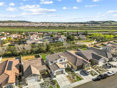Welcome to this beautifully upgraded home situated in the gated community of Tournament Hills in Beaumont. This move in ready home features a spacious open concept layout filled with natural light, creating a warm and inviting atmosphere perfect for everyday living and entertaining. The kitchen offers a large island, ample cabinetry, and a double door pantry, seamlessly connecting to the dining and living areas. A stunning 12 foot center opening sliding glass door enhances the space, creating seamless indoor outdoor living and leading to the fully finished backyard. One bedroom and one full bathroom are conveniently located downstairs, ideal for guests, multi generational living, or a home office setup. Upstairs, you will find generously sized bedrooms, a private primary suite with a walk in closet and ensuite bathroom, and a convenient upstairs laundry room. The home offers a well designed floor plan focused on comfort and functionality. The home is equipped with solar panels, offering energy efficiency and potential cost savings. Set within the highly desirable Tournament Hills community, residents enjoy resort style amenities including a pool, spa, playground, picnic areas, barbecue areas, scenic lake, and walking paths. Conveniently close to parks, schools, shopping, and easy freeway access. Do not miss the opportunity to make this move in ready home yours.