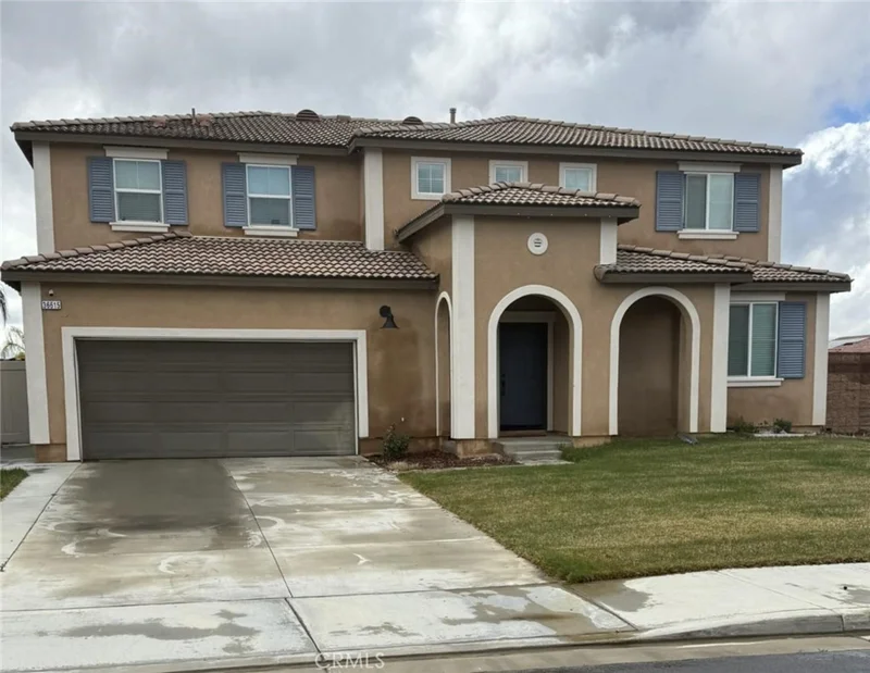 Generously sized 3013 sq ft home featuring 5 bedrooms and 3 bathrooms, designed with an open floor plan, situated on a premium lot within the gated Olivewood Community. This stunning residence includes a spacious island with bar seating, comprehensive security throughout, a walk-in pantry, and stainless steel kitchen appliances. The main floor offers a bedroom and a full bath, along with a tandem 3-car garage that has a side door leading to the backyard. On the second level, you will discover a large loft, a laundry room, the primary bedroom complete with a dressing area, a walk-in closet, a linen closet, and separate vanities, in addition to three more bedrooms and a second full bath. Conveniently located near the 10/60 freeway and shopping areas, this home allows you to enjoy resort-style HOA amenities, including a pool and spa, splash pad, community park, picnic area, basketball court, walking trails, and a clubhouse. This exquisite home also features SOLAR, upgraded backyard and numerous amounts of upgrades you have to see in person!