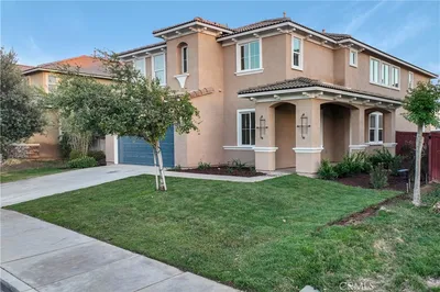 Welcome Home to one of the biggest floor plans and lot sizes offered in Shadow Creek. Shadow creek is a NO HOA community! Conveniently located off the 10 freeway: This 4200 sq ft home offers the perfect blend of space, comfort, and functionality! Featuring 5 bedrooms, 3 1/2 bathrooms and a dedicated office. This home is ideal for growing families, multi-generational living or anyone just needing extra room to spread out. Step inside and downstairs you'll find an office great for those who work from home. A separate restroom just for your guests, 2 spacious living areas and a huge kitchen with a big beautiful island and granite counter tops with granite back splash. There's also 1 bedroom and separate bath downstairs great for visitors or in-laws to have privacy. There's endless options for entertaining, relaxing or creating the perfect media or game room. The open-concept of the kitchen is the heart of the home, has a seamless flow into the main living space-perfect for hosting gatherings. Upstairs you'll find the loft area, perfect hangout spot, for family and friends. Three nice size bedrooms with shared bathroom. The primary suite boasting its own private sitting area with fireplace and an oversized walk-in closet that offers exceptional storage. Sellers also added a cool custom feature of a door from walk-in closet to laundry room, making doing laundry a breeze. Also upstairs you'll find 2 extra closets in hallway and loft giving even more options for exceptional storage space. Outside you'll fall in love with the massive 13,068 sq ft lot with the cutest Mickey mouse side gate. Plenty of space for entertaining, play, or future customization. Plus enjoy the convenience of not 1 but 2 large tuff sheds, ideal for storage, hobbies or even can convert one to a craft room or extra lounge area outside, the ideas are endless. This home truly checks off all the boxes- Space, layout, outdoor potential and NO HOA- Don't miss your opportunity to make it yours!!!!! You wont find another house like it.